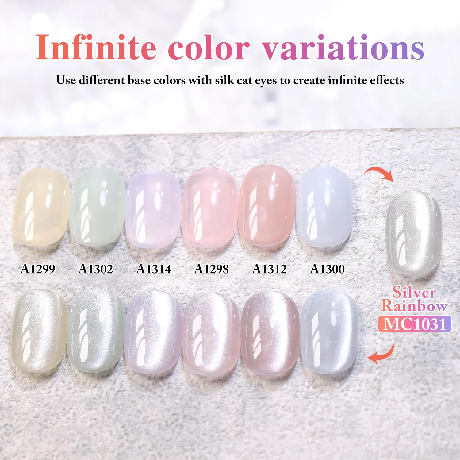 0.5 OZ Cat Eye Gel Polish with Magnet 15ML Holographic Glitter Shimmer Translucent Jelly Color Magnetic Nail Polish Salon DIY at Home (MC1031)