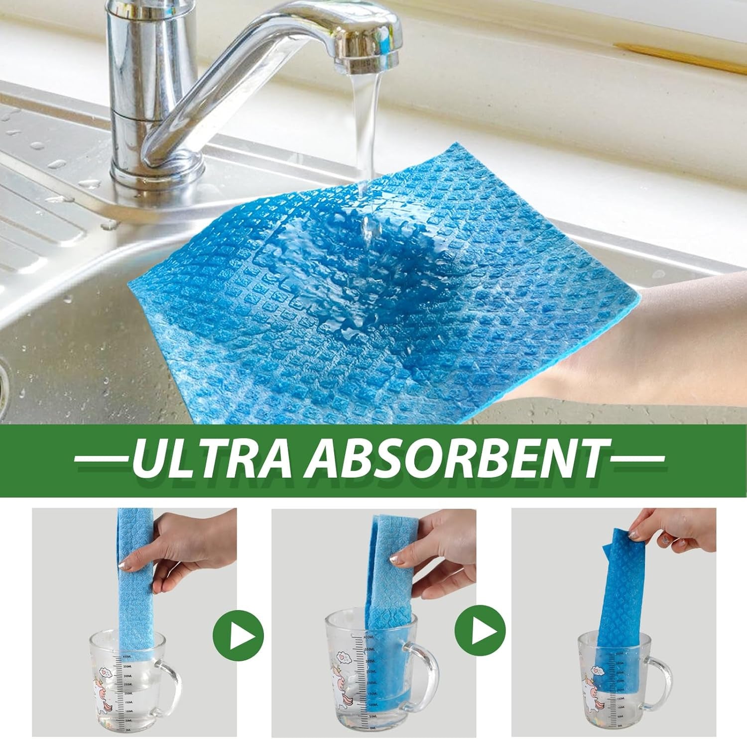 10 Pack Swedish Dishcloths, Reusable Cellulose Sponge Cloths with Adhesive Clips, Swedish Dish Paper Towels No Odor for Cleaning Home Kitchen
