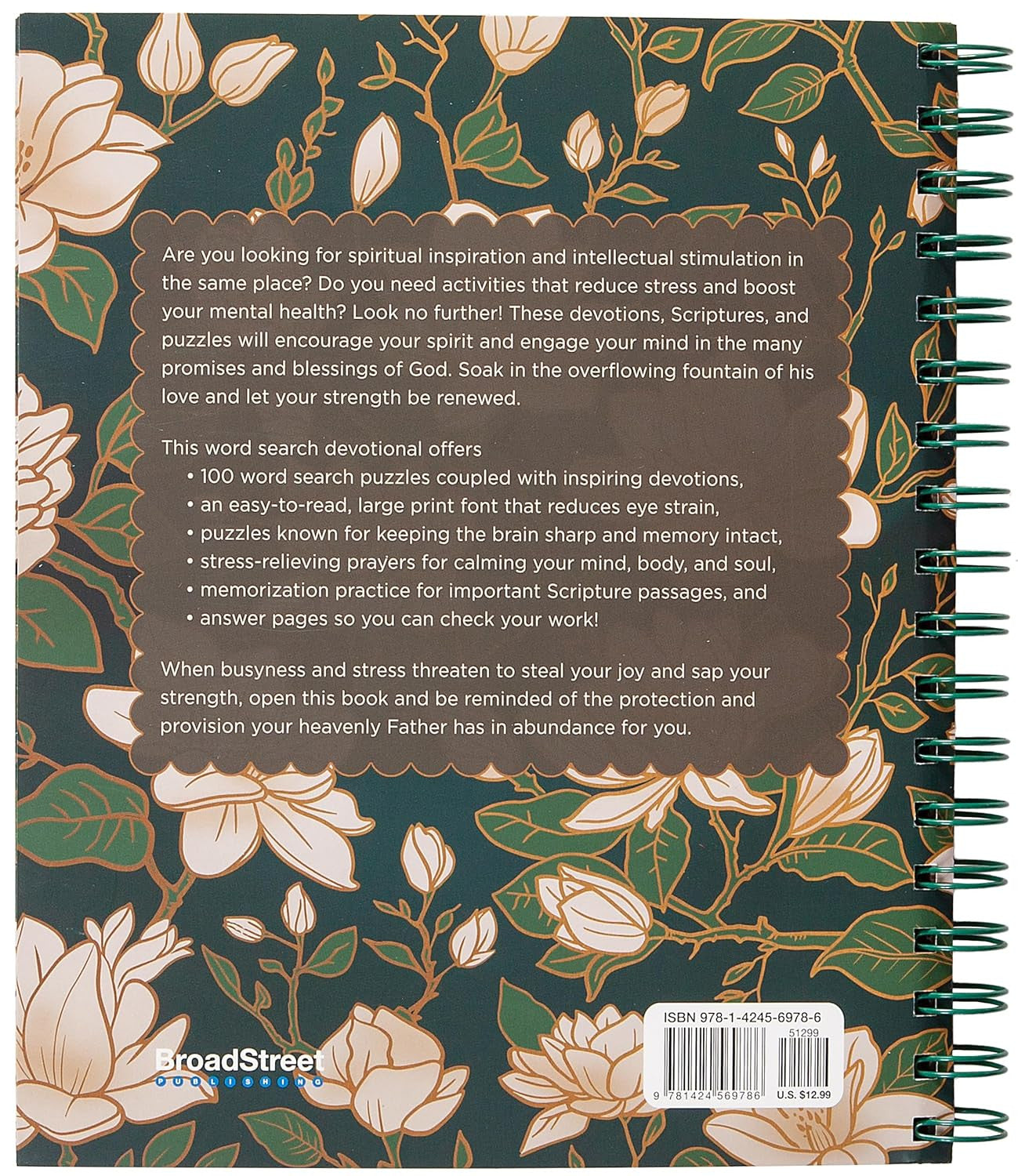 Are you looking for spiritual inspiration and intellectual stimulation in the same place? Do you need activities that reduce stress and boost your mental health? Look no further! These devotions, Scriptures, and puzzles will encourage your spirit and engage your mind in the many promises and blessings of God. Soak in the overflowing fountain of his love and let your strength be renewed. This word search devotional offers When busyness and stress threaten to steal your joy and sap your strength, open this book and be reminded of the protection and provision your heavenly Father has in abundance for you. Features: