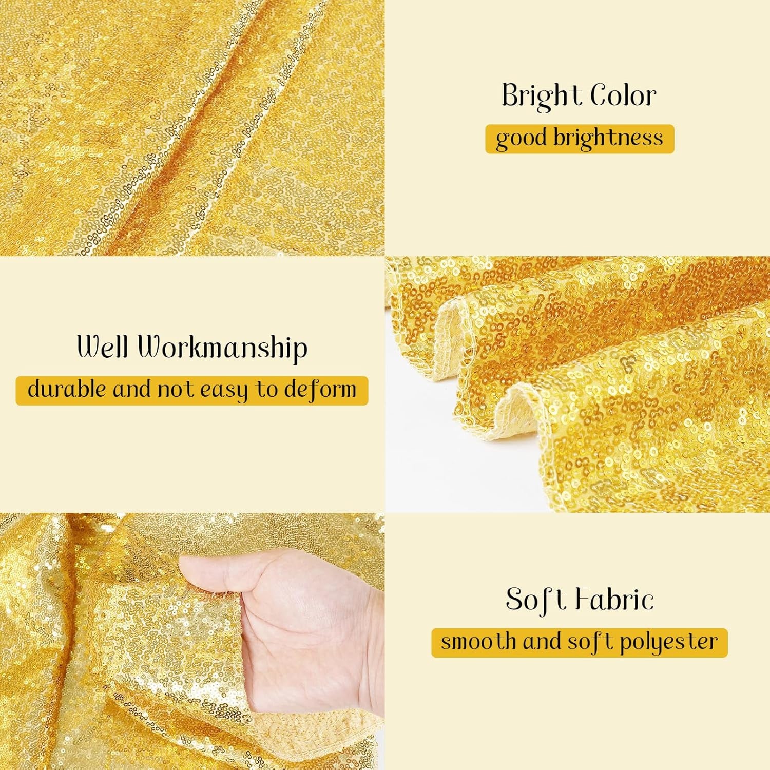Item model number LX-R120-GOLD Style Unique Weave Type Satin Weave Number of Items 1 Pattern Solid Embellishment Glitter, Sequin Number of Sets 1 Theme Celebratory Unit Count 1.0 Count Product Dimensions 120"L x 120"W Material satin Corner Style Rounded Seasons All-Season Finish Type Glossy Item Weight 14 ounces Occasion Anniversary, Baby Show, Birthday, Wedding Special Feature 可定制 Color Gold Shape Round Recommended Uses For Product Desk Fabric Type Sequin Product Care Instructions Hand wash and air dry. If necessary, iron the back surface with steam but not dry iron. Size 120" (Round)