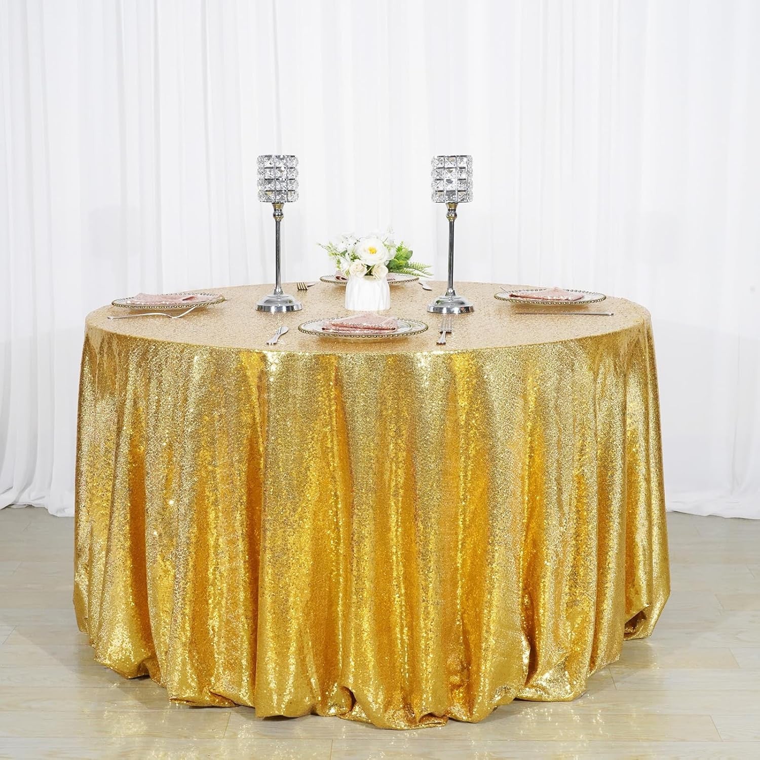 120" round Sequin Tablecloth, Thick Not See through Gold Table Cloth for Wedding