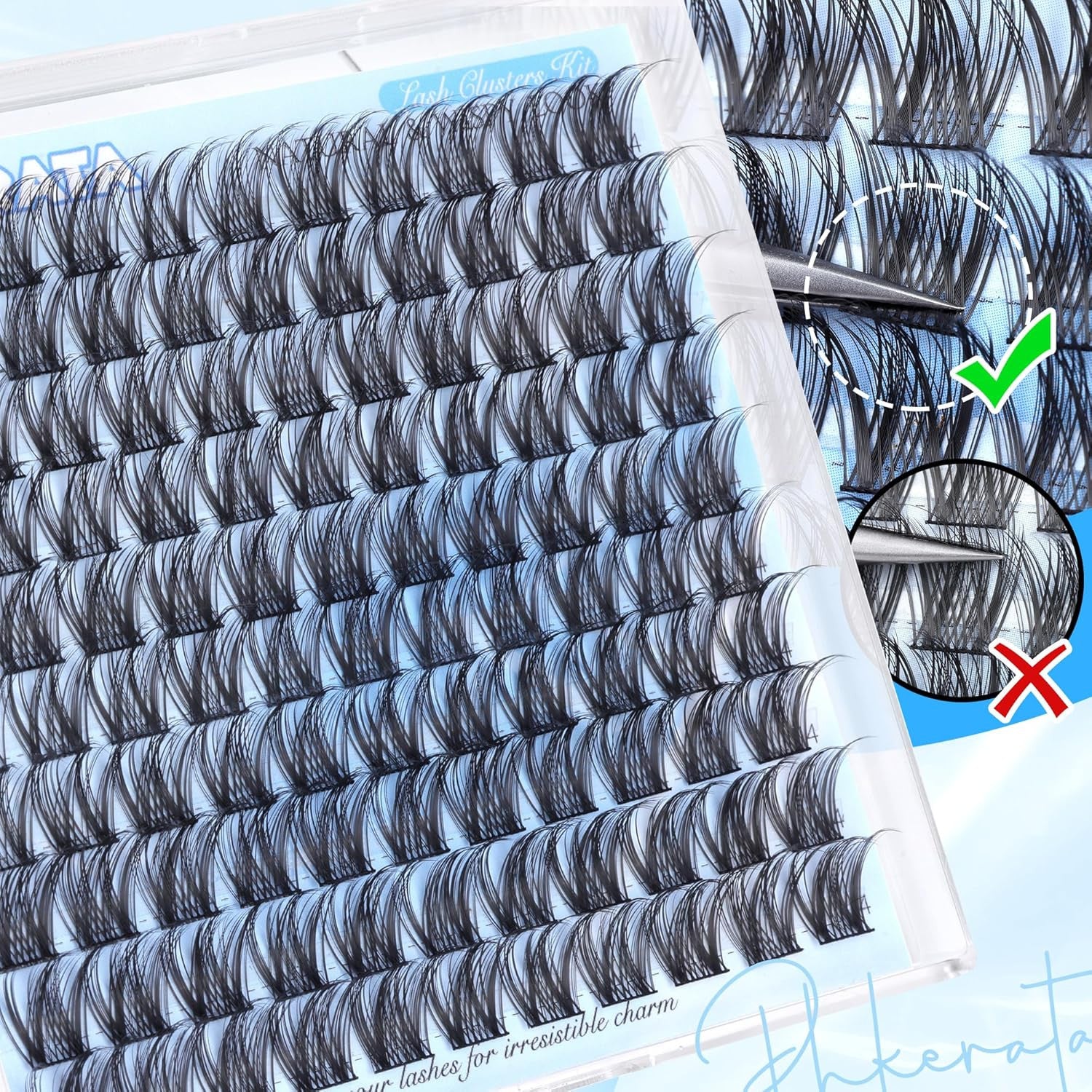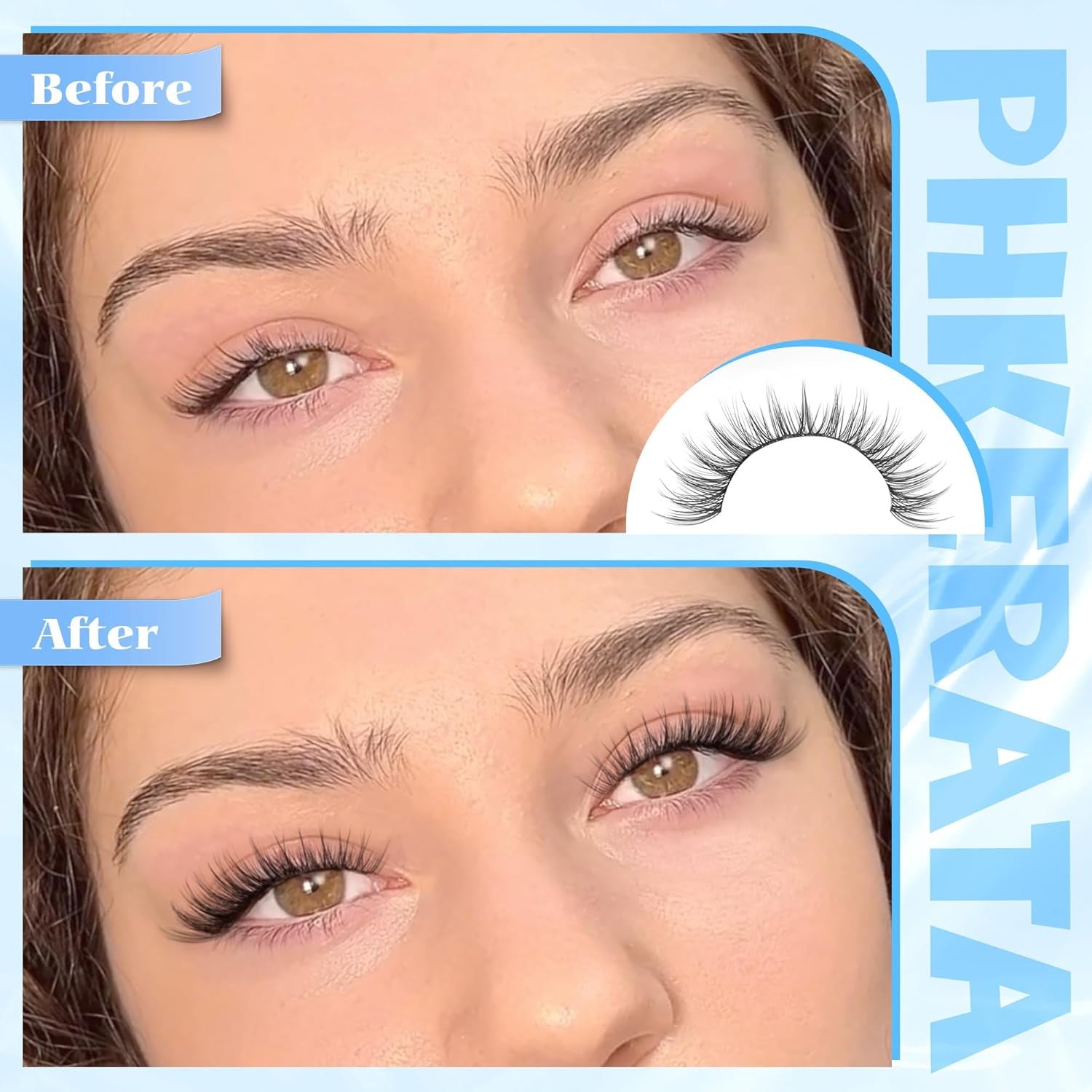 PHKERATA 14mm Natural Cluster Lashes Wispy Eyelash Clusters DIY Individual Lashes C Curvature Eyelash Extensions for Daily Wear with Soft Lash Band