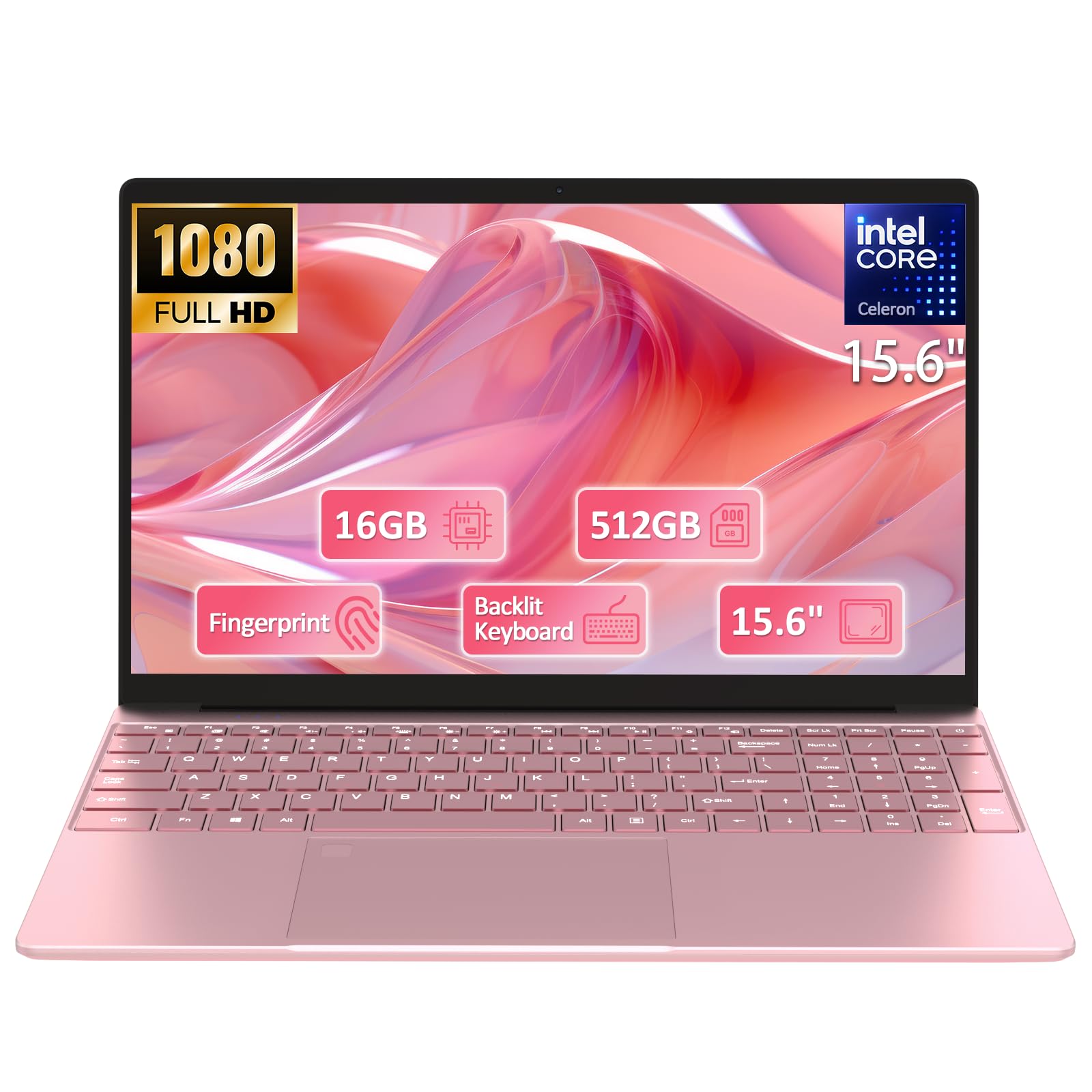 15.6" Student Laptop with Backlit Keyboard|16GB RAM 512GB SSD Laptop Computer|1920×1080 FHD Eye Protection Display|Fingerprint|38Wh Large Battery|180°Open Angle|WiFi|Webcam|BT 4.2|HDMI