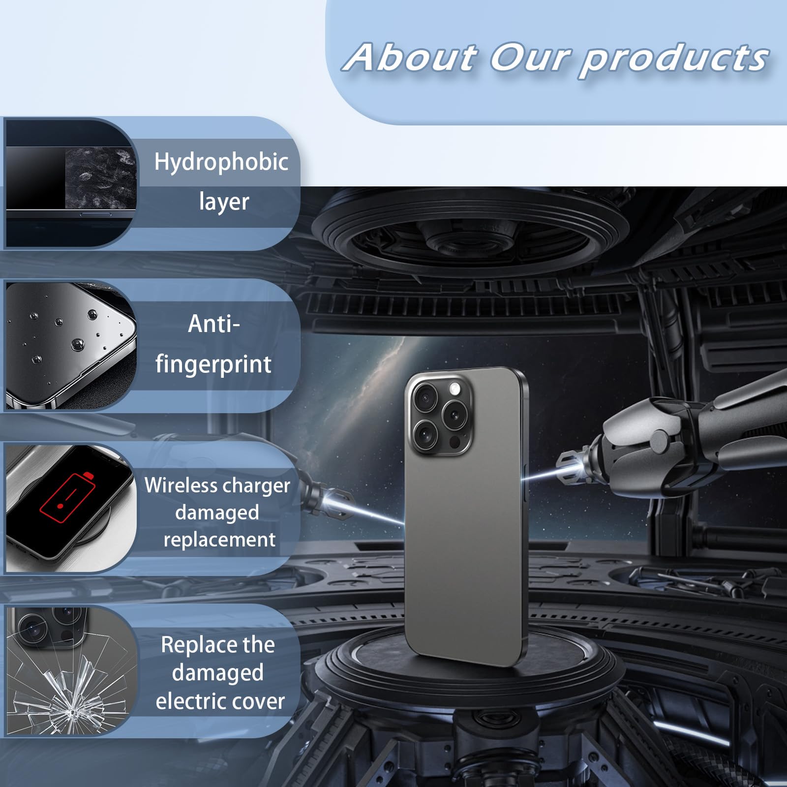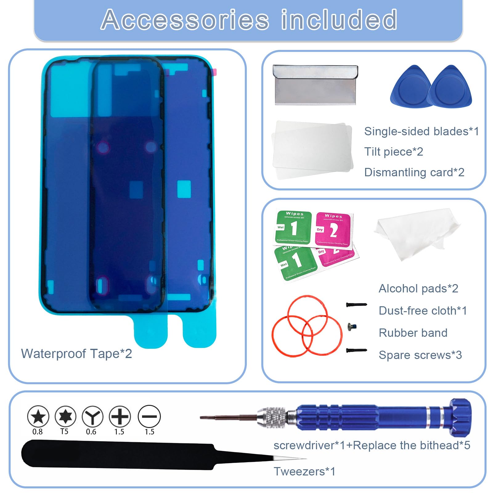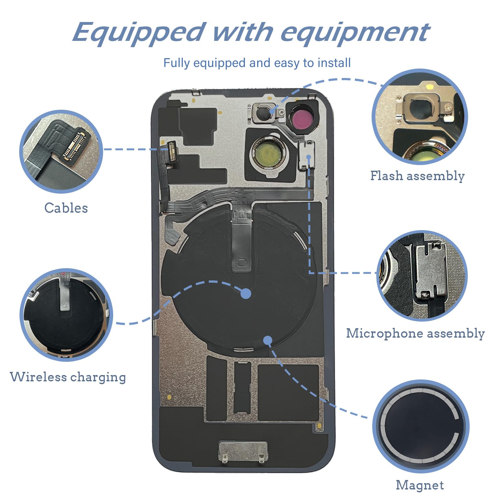 - 【Products】:The 15(6.1 inches,Black) rear cover glass provides a superior grip and an integrated camera module.Inside the product is a metal bracket that houses a wireless charging module,cables, microphone assembly and flashlight.Ensuring your device maintains its premium look and functionality.