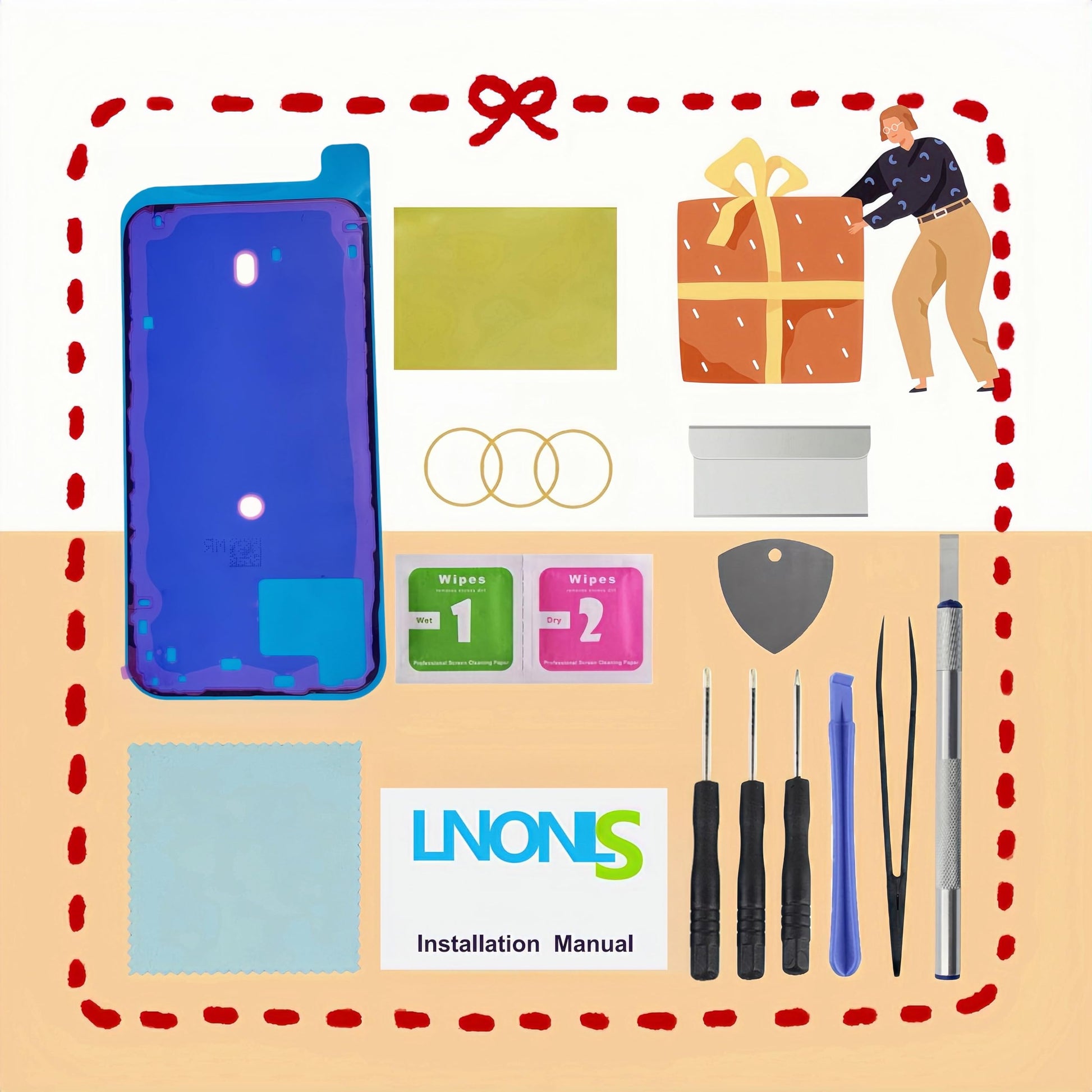 The package includes a complete repair kit, featuring all the tools and a detailed instruction manual. With these, you can easily and safely replace the back cover glass at home. Follow the provided safety and care instructions, such as using a hairdryer to remove broken glass and avoiding the use of sharp objects or liquids on the rear camera, to ensure a successful and safe repair.