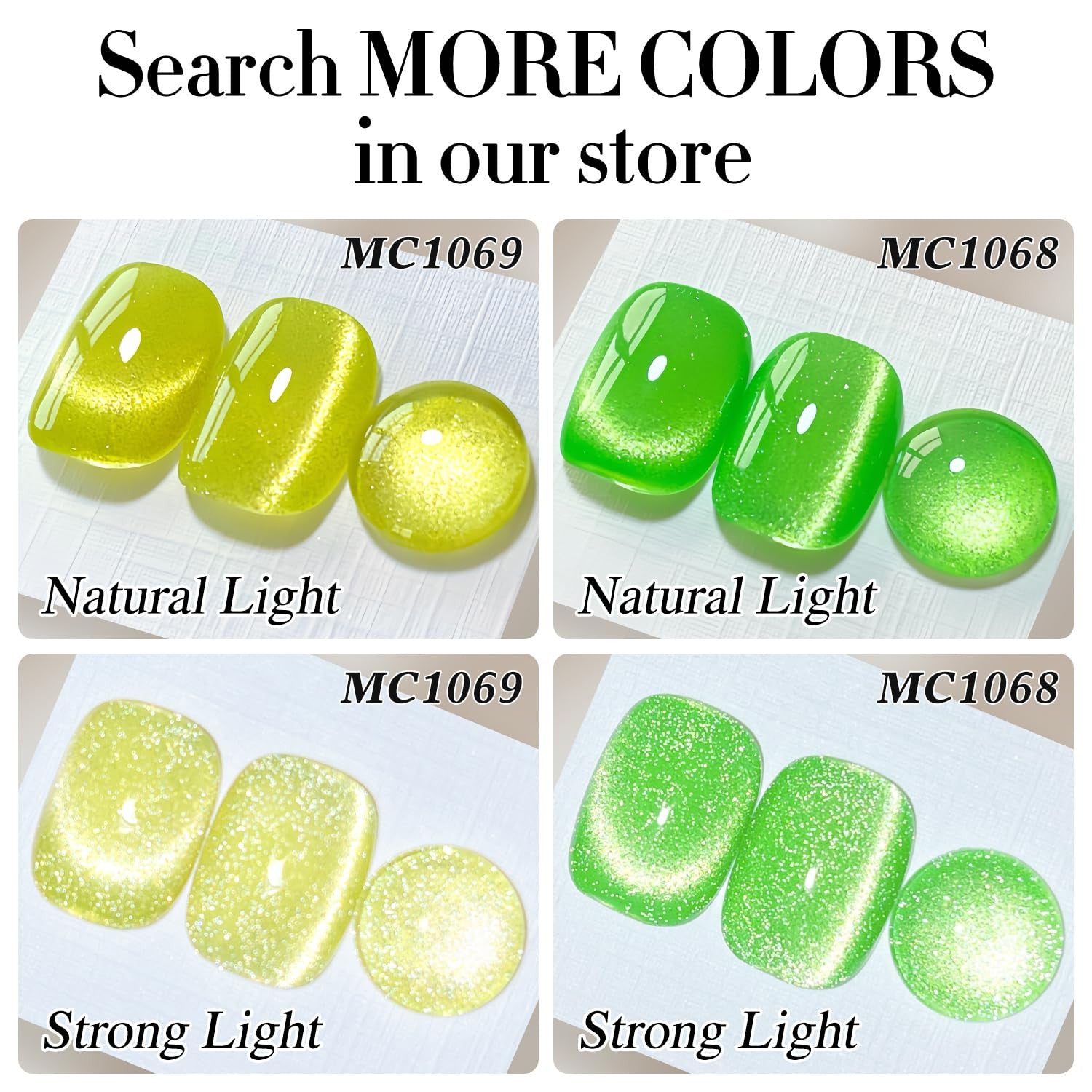 15ML Cat Eye Gel Polish with Magnet Glitter Shimmer Translucent Jelly Color 0.5 OZ Magnetic Gel Polish Salon DIY at Home (Green-Mc1068)