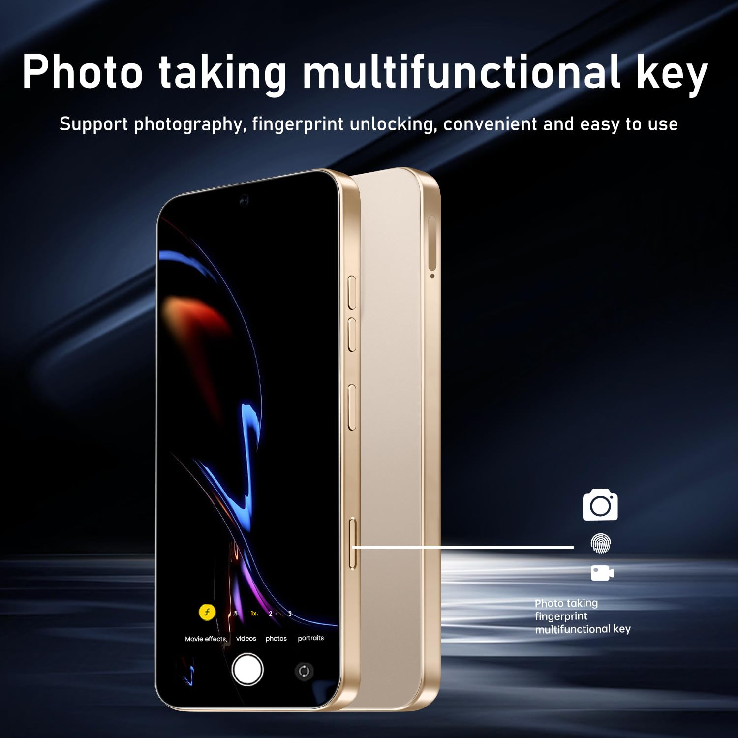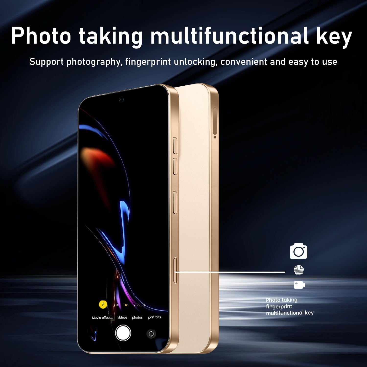 16PROMA X 16GB+1TB 6.99" HD Screen Smartphone Unlocked Cell Phone,Battery 7000mAh Unlocked The Phone, Android 14 Fingerprint Button Unlock/GPS/Dual SIM/5G/Face ID(Desert Titanium)