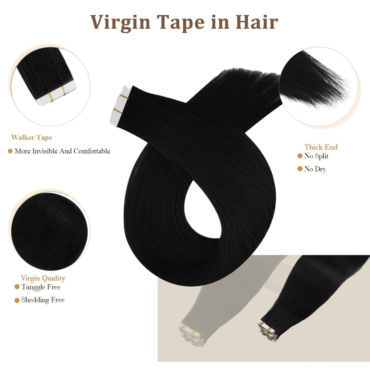 Full Shine Black Virgin Tape in Hair Extensions Human Hair