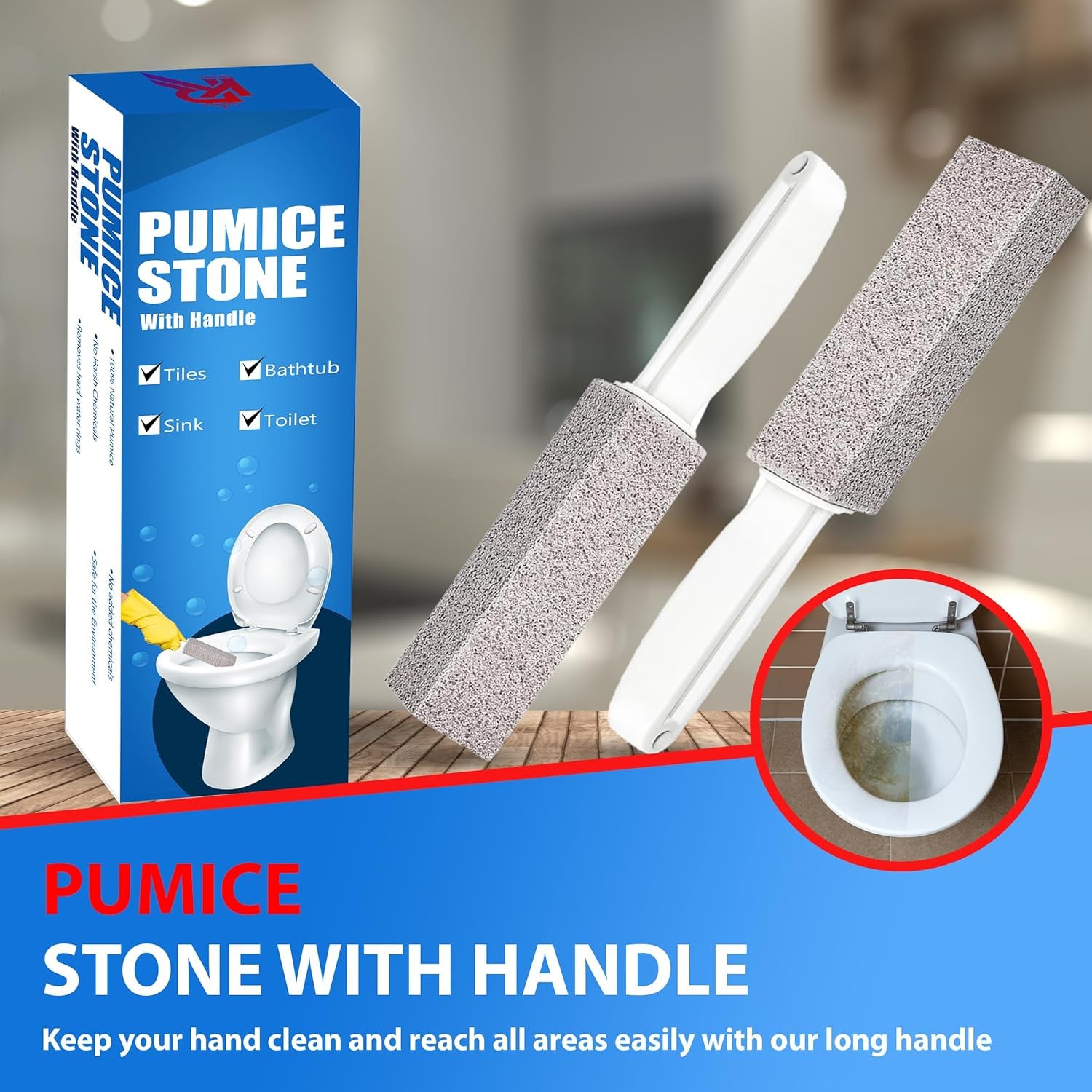 Our specially designed toilet pumice stone with handle is your go-to solution for a spotless bowl! Say goodbye to stubborn stains as you effortlessly clean with precision. Experience the ease of ring king's toilet bowl cleaner – trusted and loved by homeowners. Make every clean a breeze with the power of pumice in your hands. Elevate your bathroom care game today!