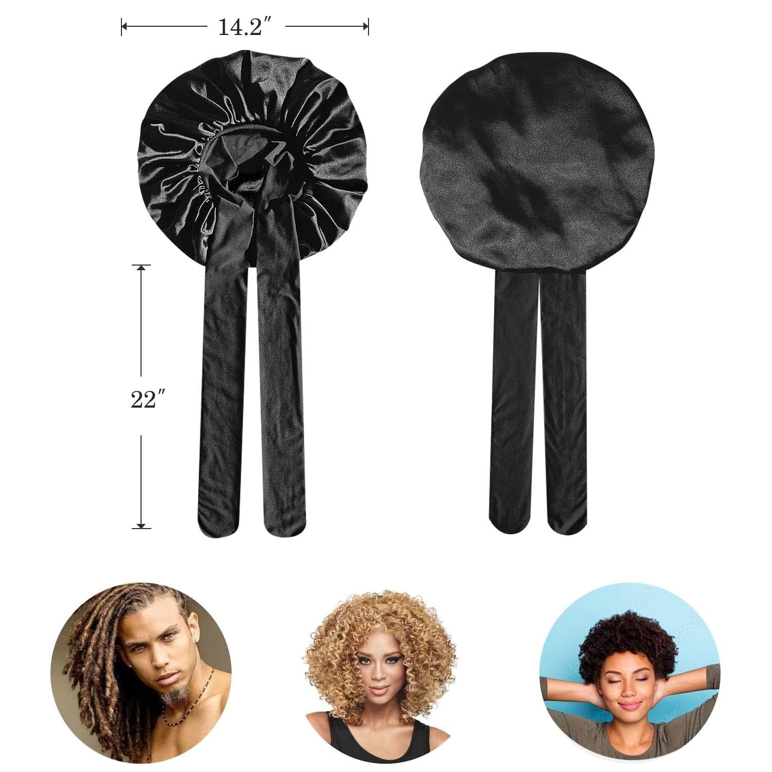 2Pcs Pack Satin Bonnet Silk Bonnet for Sleeping Hair Bonnet with Tie Band Sleep