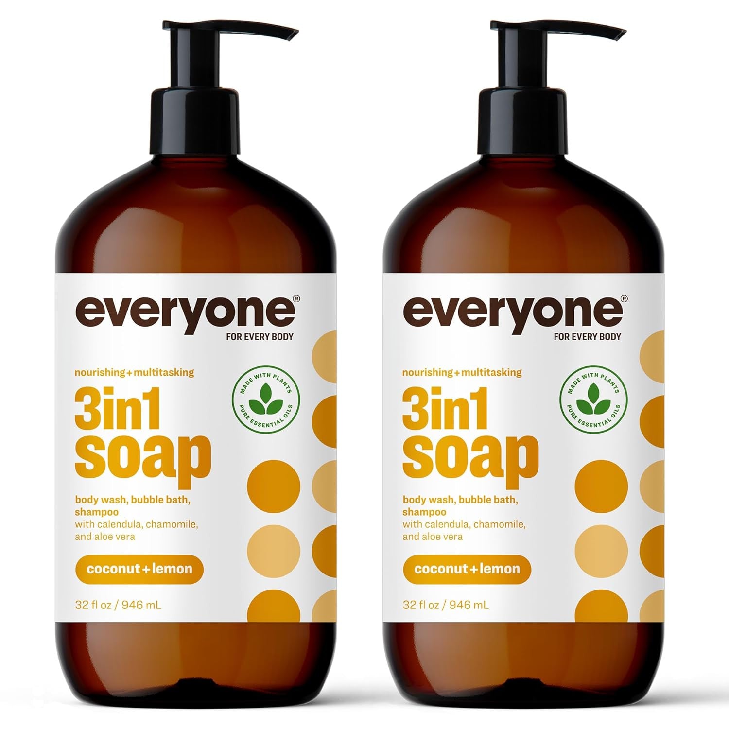 3-In-1 Soap, Body Wash, Bubble Bath, Shampoo, 32 Ounce (Pack of 2), Coconut and Lemon, Made with Essential Oils for Men and Women