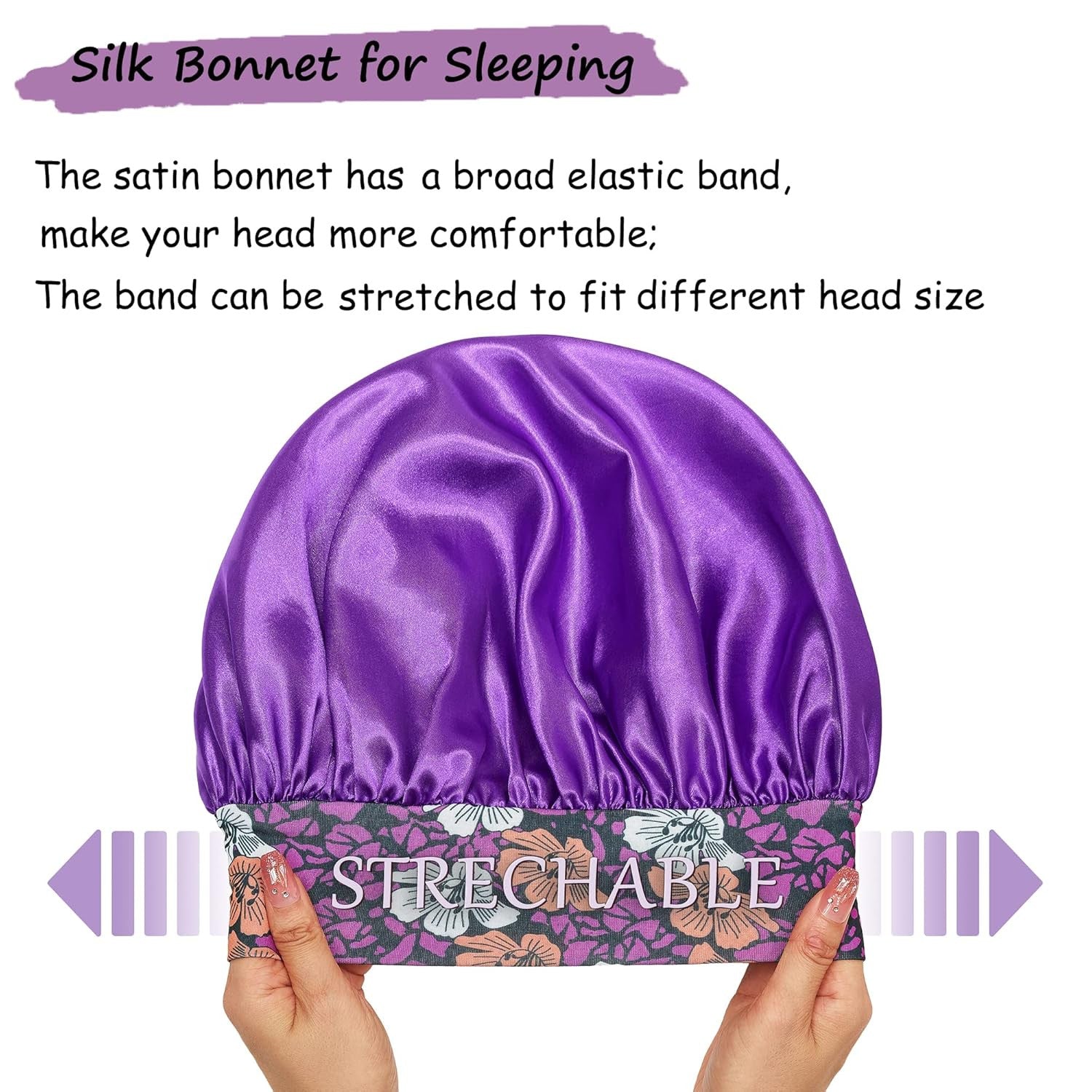 3 Pack Satin Bonnet Silk Hair Bonnet for Sleeping, Sleep Bonnets for Women Large