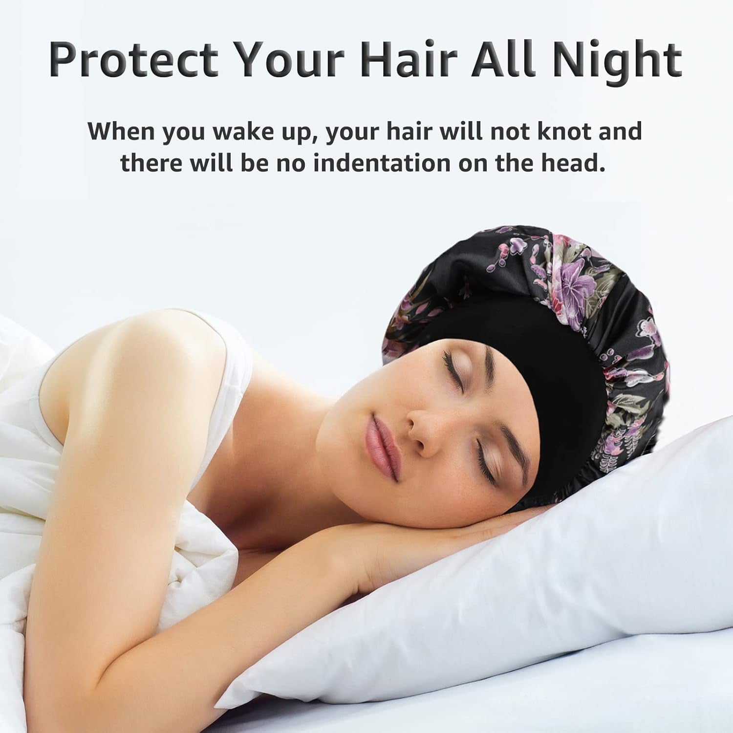 3 Pack Satin Bonnet Silk Hair Bonnet for Sleeping, Sleep Bonnets for Women Large
