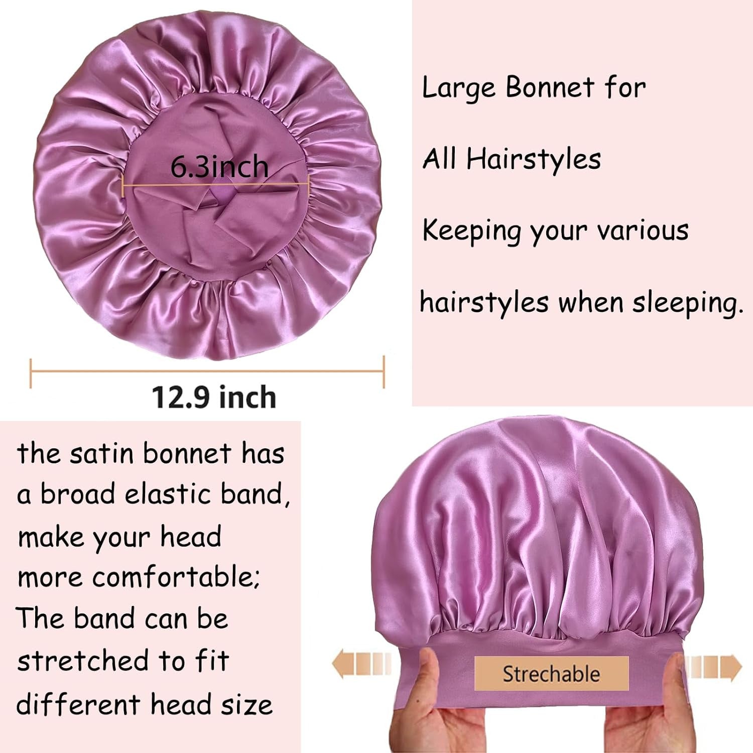 3 Pack Satin Bonnet Silk Hair Bonnet for Sleeping, Sleep Bonnets for Women Large