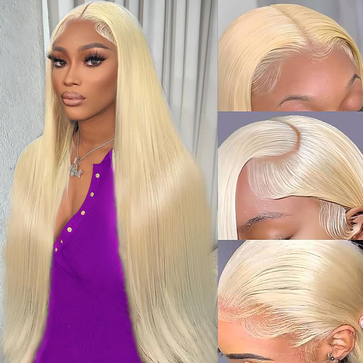 32 Inch 613 13x6 Lace Front Wigs Human Hair Straight Blonde Wig 180% Density 613 Lace Front Wig Human Hair for Women, Pre Plucked, Minimal Shedding, Soft Texture, Natural Look for Daily Wear