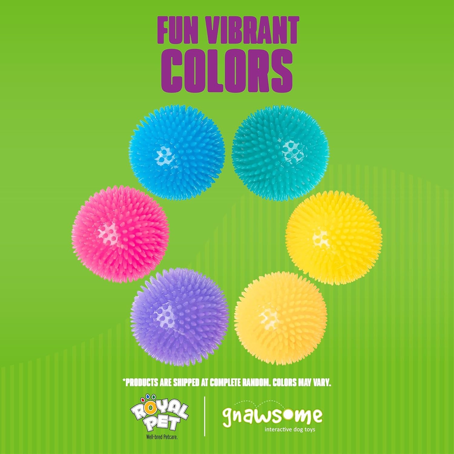 The XL Gnawsome 4.5” Spiky Squeaker Ball Dog Toy is a wellness powerhouse and an engaging playmate for your pet. As fellow dog lovers, the Royal Pet team pours our heart and soul into creating products that go above and beyond for our customers and their precious companions. Crafted to promote good dental and gum health, our Squeaker Ball features a distinctive gum-massaging, spiky texture that your pet will adore. The hidden internal squeaker adds an extra layer of excitement to playtime while ensuring there are no choking hazards, making it perfect for smart, curious pets. Day or night, the toy’s texture, sturdiness, and vivid colors make playtime engaging and exciting. Crafted from food-grade, BPA-free TPR material, it not only entertains but also offers a lasting play experience in any setting. Take it along on trips to the beach or park for an enthralling game of fetch. Designed for dogs of all sizes, the 4.5-inch diameter ensures hours of joy, exercise, and mental stimulation. At Gnawsome, we're not just providing a pet product; we're delivering a promise of premium quality, safety, and family-oriented care. Treat your treasured pet to a toy that mirrors the love and dedication you have for them.