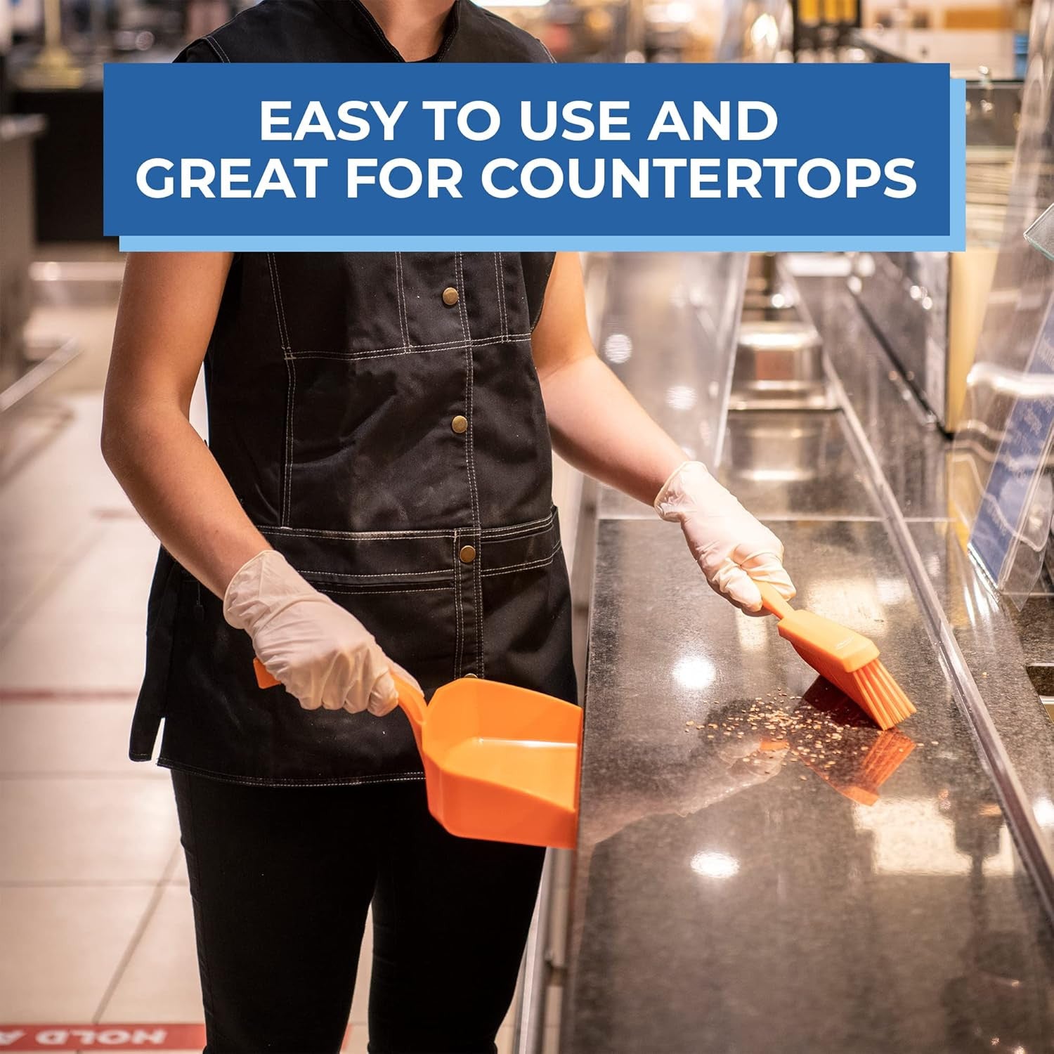 45877 Bench Cleaning Brush, Polypropylene/Polyester Soft Bristle Dustpan Brush & Sweeper with Handle, 14-Inch, Orange