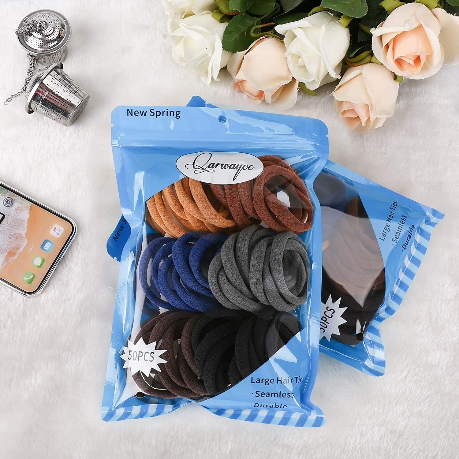 50PCS Hair Ties for Women, Cotton Seamless Hair Bands, Elastic Ponytail Holders, No Damage for Thick Hair, 2 Inch in Diameter, 6 Colors by