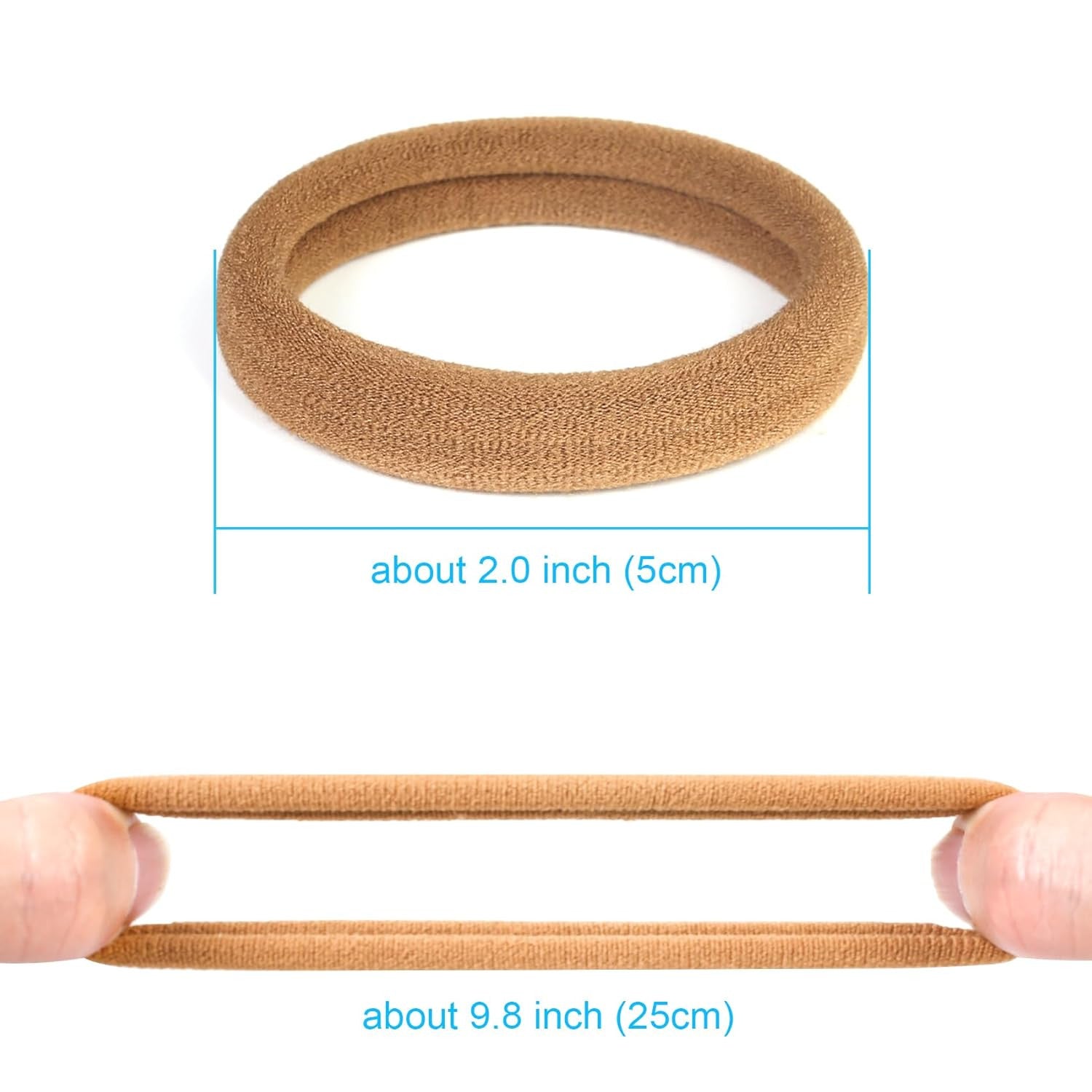 50PCS Seamless Hair Ties for Women Thick Hair, Soft Pony Tails, Large Elastic Hair Bands, Thick Ponytail Holders No Damage, Light Brown, 2 Inch in Diameter
