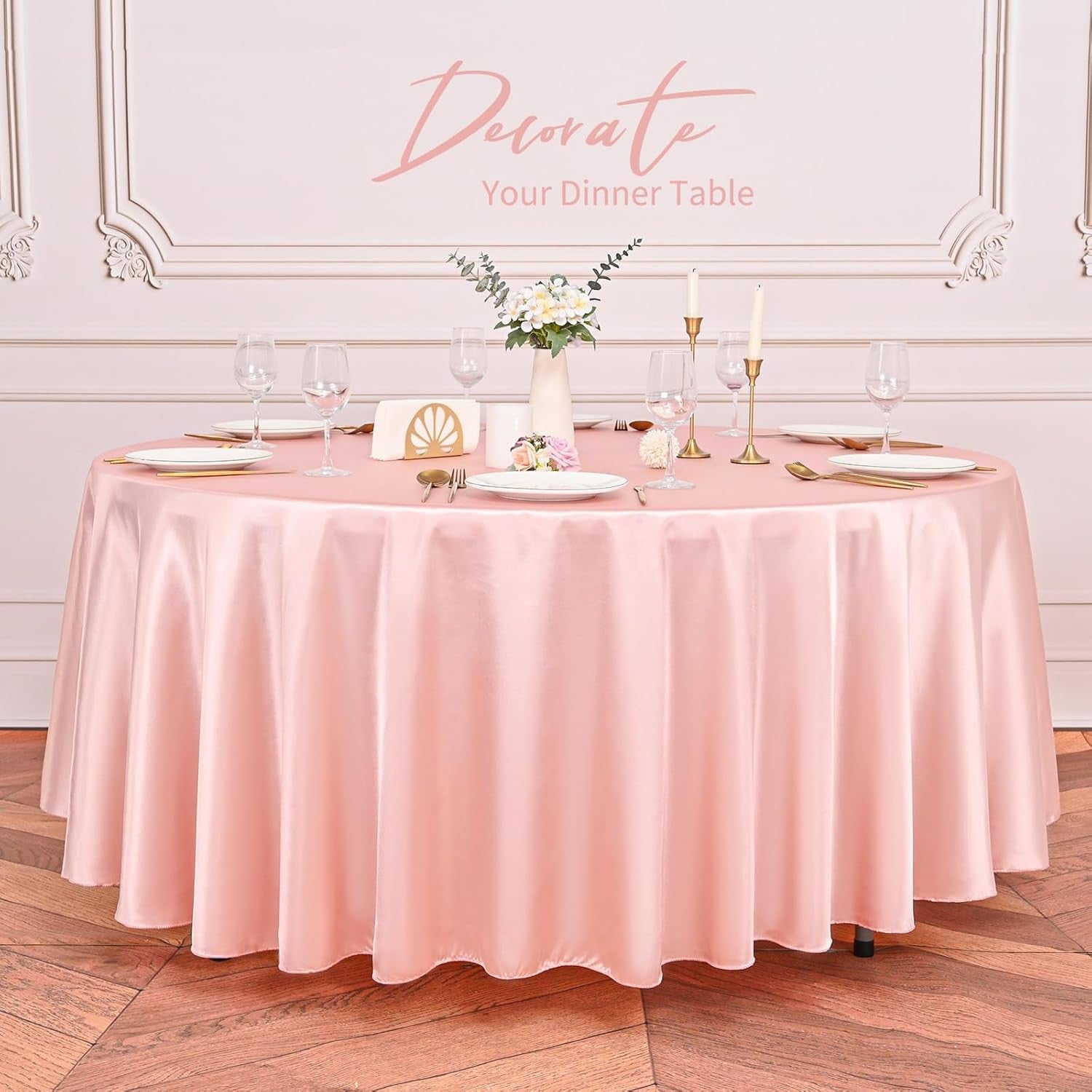 6 Pack Rose Gold round Tablecloth, 120 Inch Rose Gold Satin Fabric Tablecloth for round Table, Wrinkle Resistant Washable Tablecover Bright Silk Tableclothes for Wedding Party Dining Table Banquet