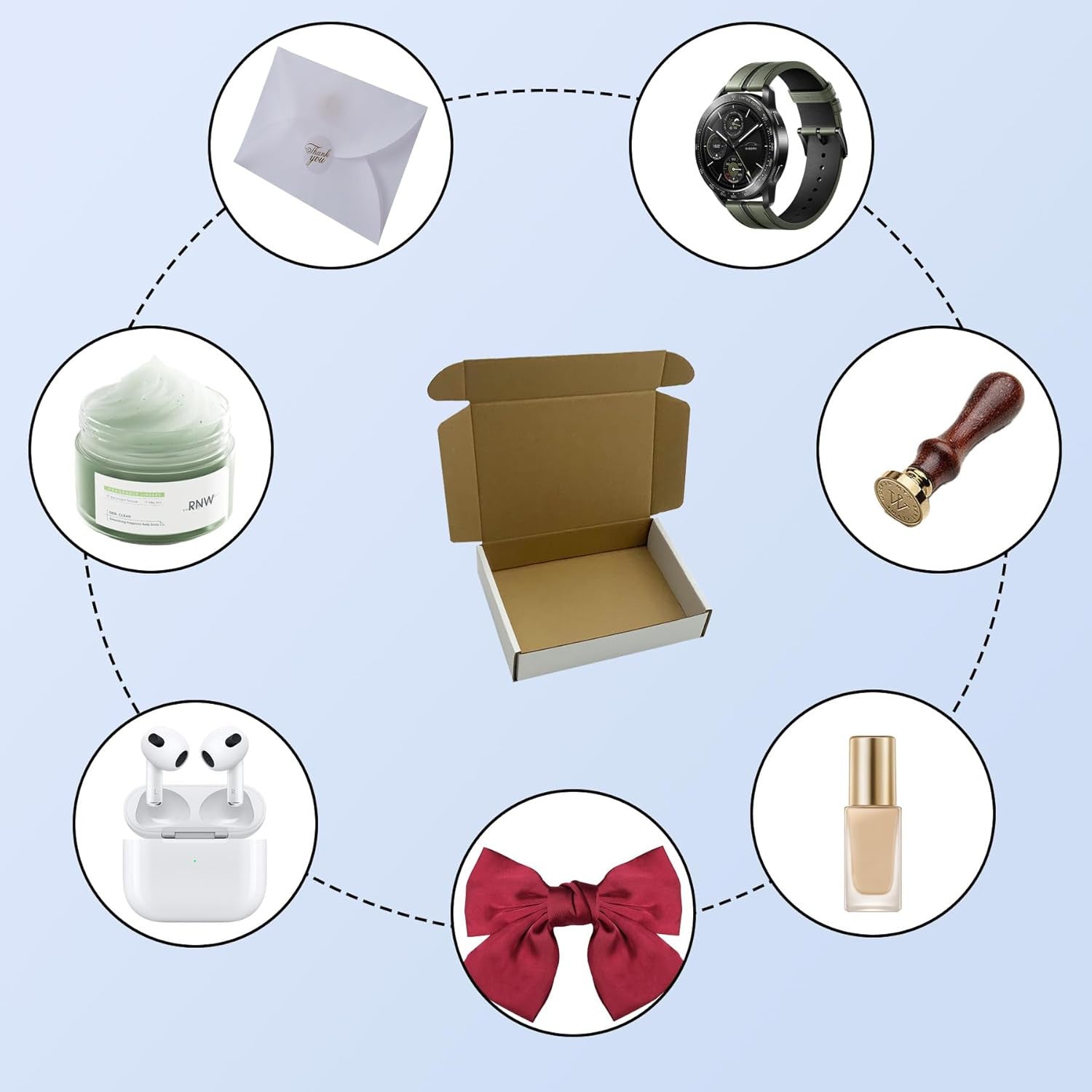 Beautiful Appearance: The 7x5x1.5 white shipping boxes edges are neat, smooth and no burrs, the product looks very beautiful as a whole. These 7x5x1.5 Inches Small Shipping Boxes made from 32ect-B kraft corrugated, high quality, super strong yet light-weight to save on postage and packaging, perfect for shipping small, lightweight items. Industry-standard construction, single wall corrugated boxes, made of sturdy kraft corrugated cartons that are recyclable and can keep your stuff safe. The size of cardboard boxes is 7 x 5 x 1.5 boxes, and 50 mailer boxes are packaged in a carton. flat shipping flat packaging saves space and makes storage more convenient. Great for small items , these 7x5x1.5 inches shipping boxes great for cosmetics, jewellery , Electronic accessories and other small item gifts.
