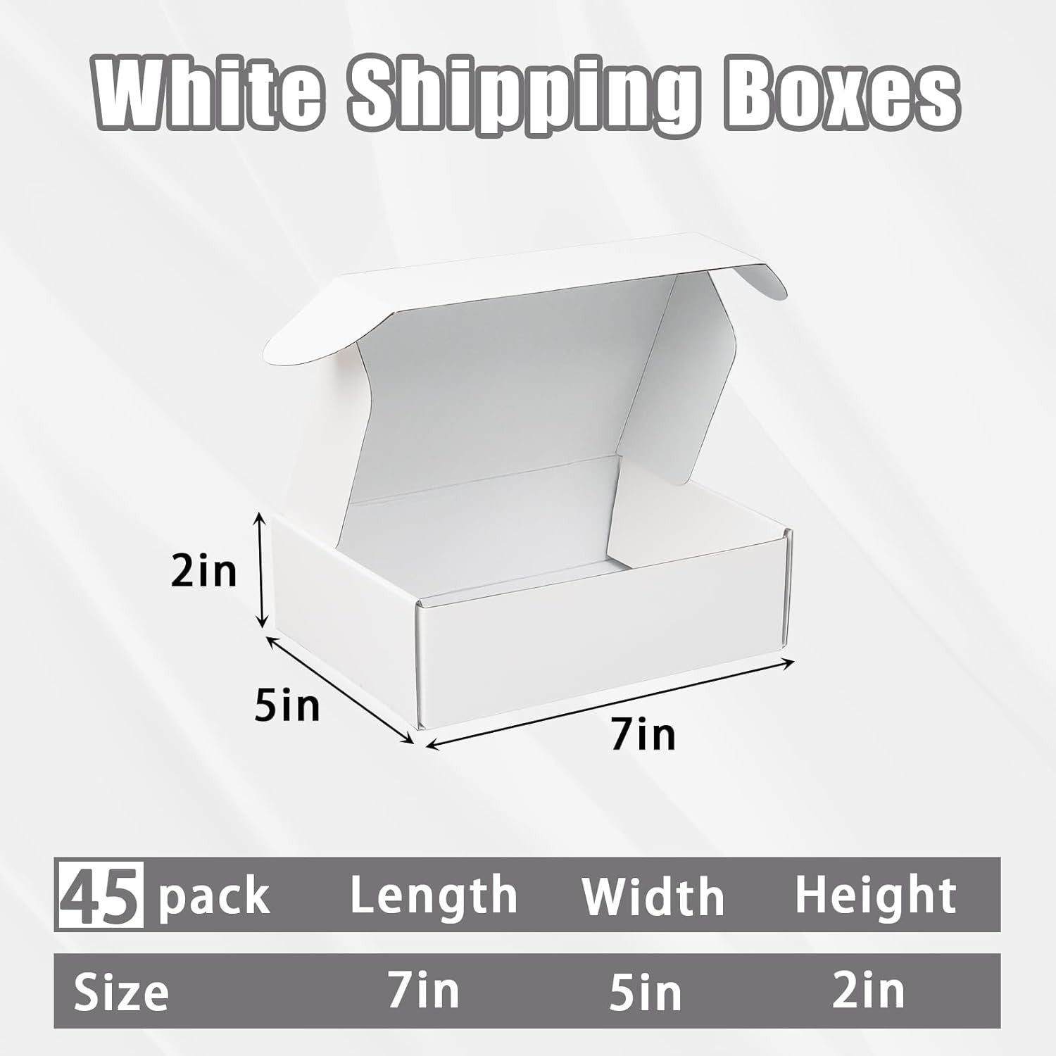 7X5X2 Inch White Shipping Boxes, 45-Pack Mailer Boxes for Small Business, Corrugated Cardboard Boxes for Shipping Packaging Mailing