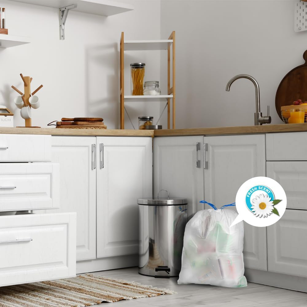 8 Gallon 0.7 MIL White Drawstring Fresh Scented Trash Bags - 22" X 22" - Pack of 100 - for Home & Kitchen