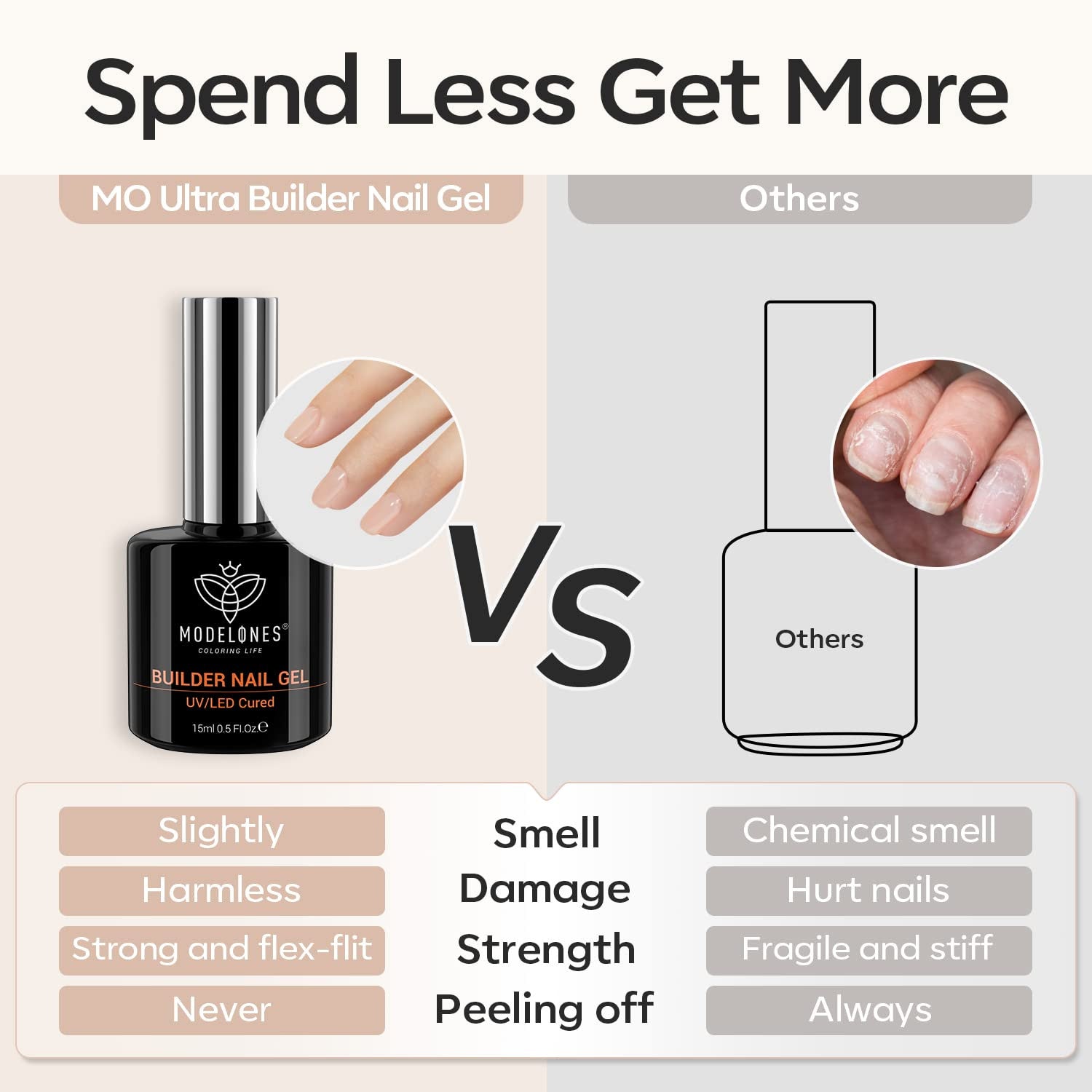 8-In-One Builder Nail Gel, Neutral Nude Builder for Thickening, LED Lamp Cured Hard Strengthener Extension Color Base Rhinestone Glue Gel Polish in a Bottle for DIY Home Salon