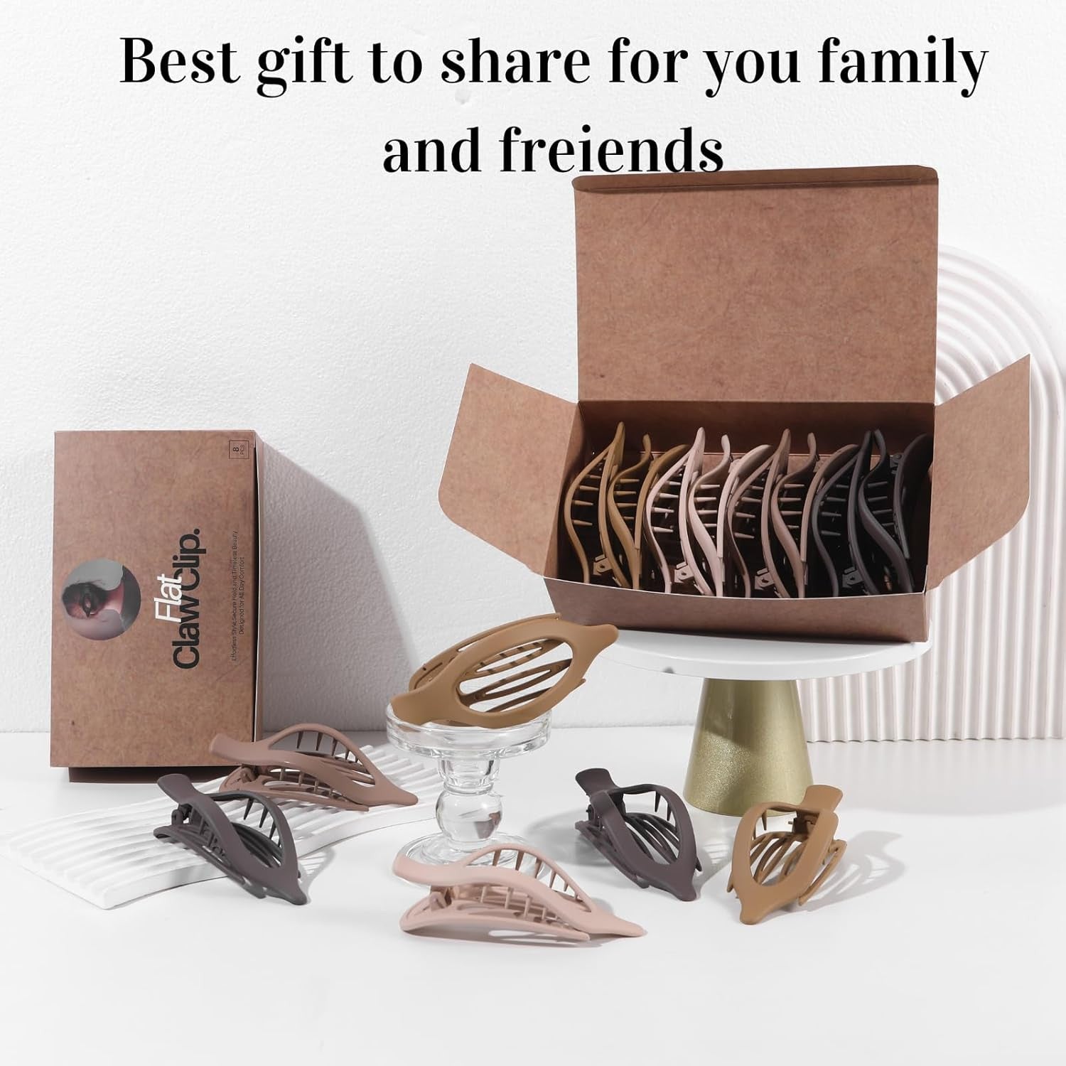 Do these flat hair clips work for thick or curly hair? Yes! Twist your hair tightly and slide the clip through the base. Many users with thick, curly, or long hair say it holds well for all-day wear. Are these clips good for fine or thin hair? Will they stay in place? They work for fine hair if styled into a twist or bun. For extra hold, tease your hair or use texture spray. Half-up styles are also a great option. Can I wear these clips while driving or lying down? Yes! These lay flat against your head, making them perfect for resting, driving, or even sleeping—no more poking from claw clips. Are they easy to use? How do I wear them properly? Twist your hair, slide the inner teeth through the base, and snap the outer piece over. It may take a try or two, but gets easy quickly. Are they sturdy and stylish enough for daily use or gifting? Definitely. They're durable, come in matte neutral colors, and are perfect for everyday wear or sharing with friends and family.