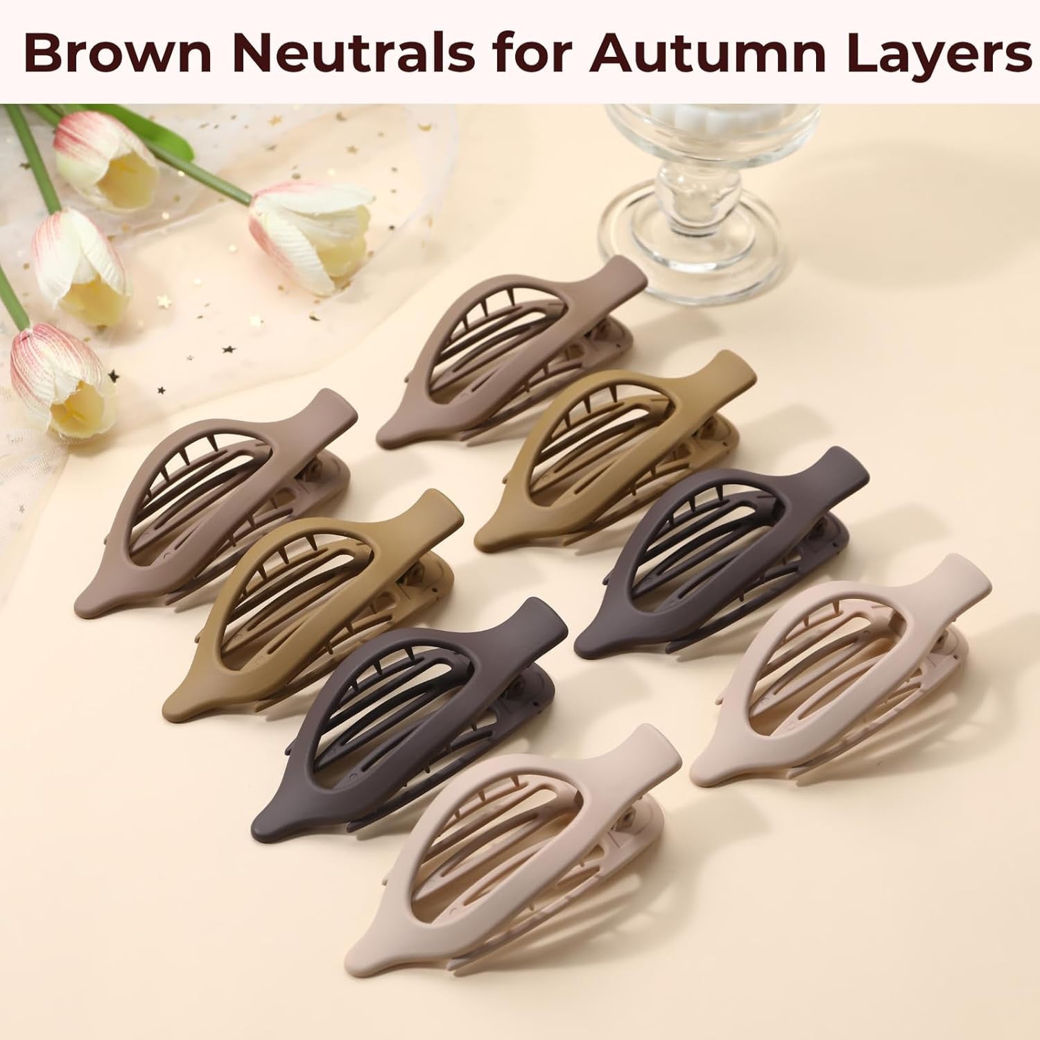 8 Pack Brown Flat Hair Clips – Neutral Matte French Brown Claw Clips for Women,