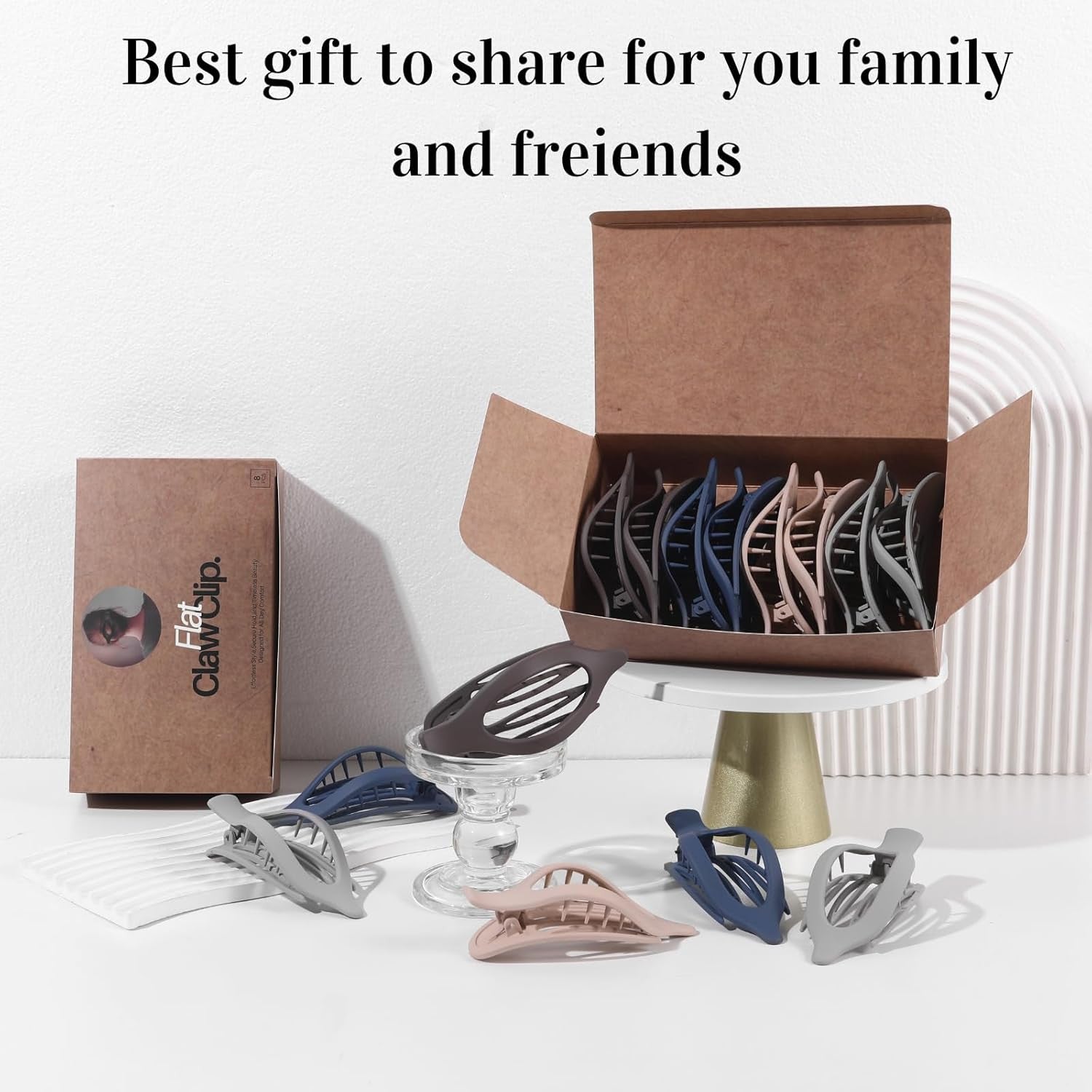 Do these flat hair clips work for thick or curly hair? Yes! Twist your hair tightly and slide the clip through the base. Many users with thick, curly, or long hair say it holds well for all-day wear. Are these clips good for fine or thin hair? Will they stay in place? They work for fine hair if styled into a twist or bun. For extra hold, tease your hair or use texture spray. Half-up styles are also a great option. Can I wear these clips while driving or lying down? Yes! These lay flat against your head, making them perfect for resting, driving, or even sleeping—no more poking from claw clips. Are they easy to use? How do I wear them properly? Twist your hair, slide the inner teeth through the base, and snap the outer piece over. It may take a try or two, but gets easy quickly. Are they sturdy and stylish enough for daily use or gifting? Definitely. They're durable, come in matte neutral colors, and are perfect for everyday wear or sharing with friends and family.