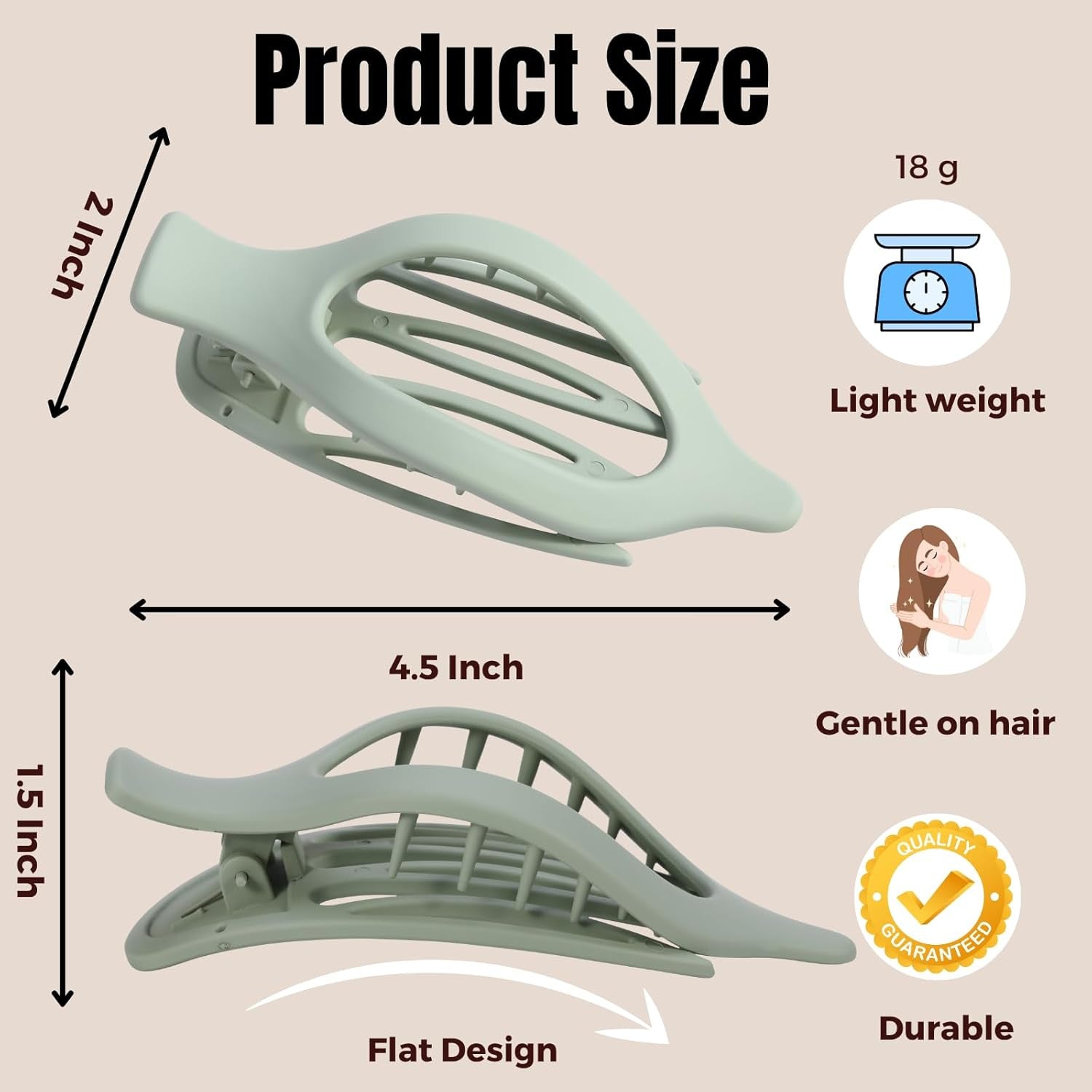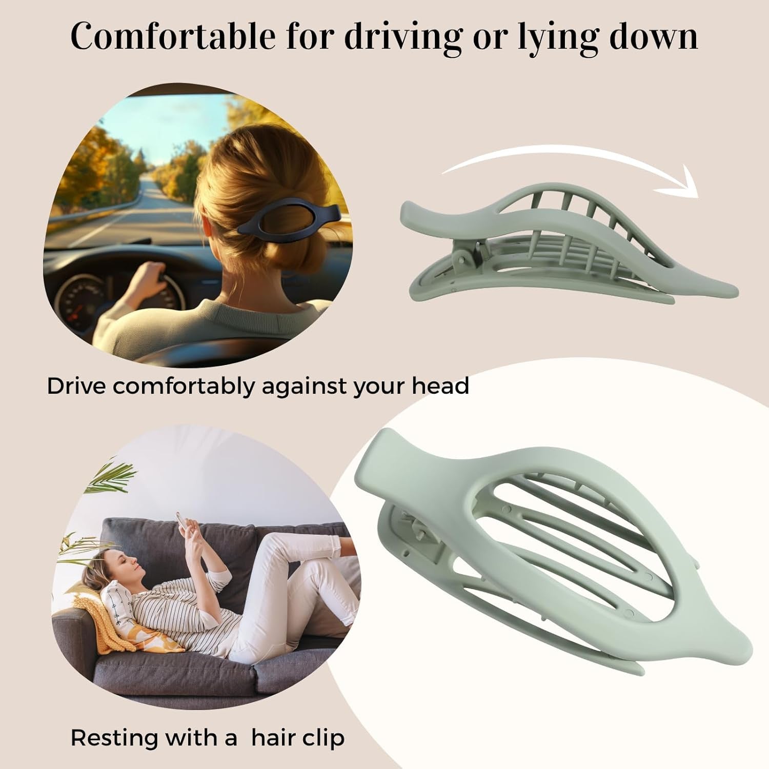Do these flat hair clips work for thick or curly hair? Yes! Twist your hair tightly and slide the clip through the base. Many users with thick, curly, or long hair say it holds well for all-day wear. Are these clips good for fine or thin hair? Will they stay in place? They work for fine hair if styled into a twist or bun. For extra hold, tease your hair or use texture spray. Half-up styles are also a great option. Can I wear these clips while driving or lying down? Yes! These lay flat against your head, making them perfect for resting, driving, or even sleeping—no more poking from claw clips. Are they easy to use? How do I wear them properly? Twist your hair, slide the inner teeth through the base, and snap the outer piece over. It may take a try or two, but gets easy quickly. Are they sturdy and stylish enough for daily use or gifting? Definitely. They're durable, come in matte neutral colors, and are perfect for everyday wear or sharing with friends and family.