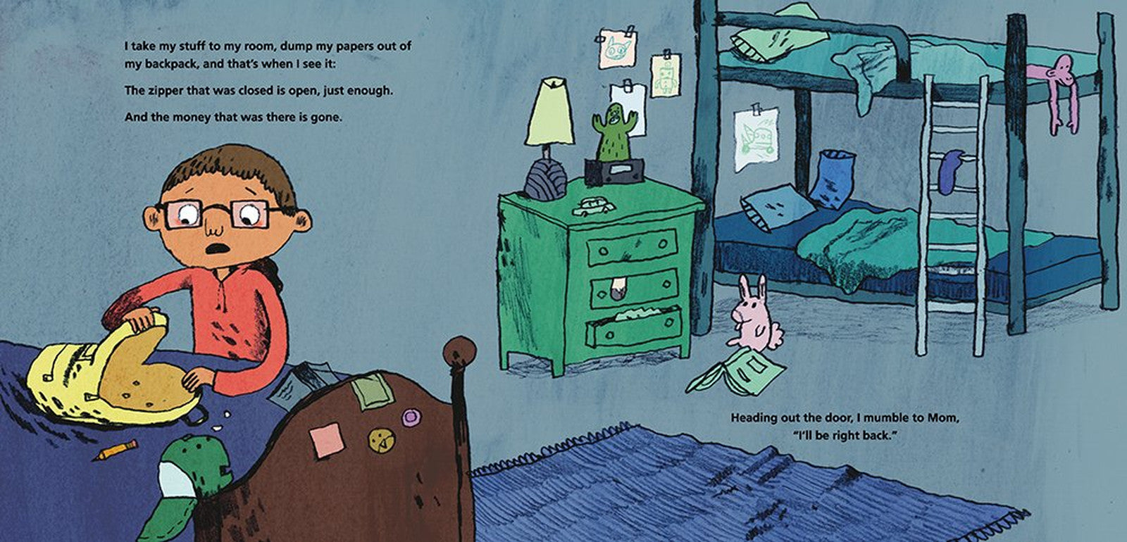 Ruben feels like he is the only kid without a bike. His friend Sergio reminds him that his birthday is coming, but Ruben knows that the kinds of birthday gifts he and Sergio receive are not the same. After all, when Ruben’s mom sends him to Sonny’s corner store for groceries, sometimes she doesn’t have enough money for everything on the list. So when Ruben sees a dollar bill fall out of someone’s purse, he picks it up and puts it in his pocket. But when he gets home, he discovers it’s not one dollar or even five or ten—it’s a hundred-dollar bill, more than enough for a new bike just like Sergio’s! But what about the crossed-off groceries? And what about the woman who lost her money? Presenting a relatable story told with subtlety and heart, the creative team behind Those Shoes pairs up again for a satisfying picture book.