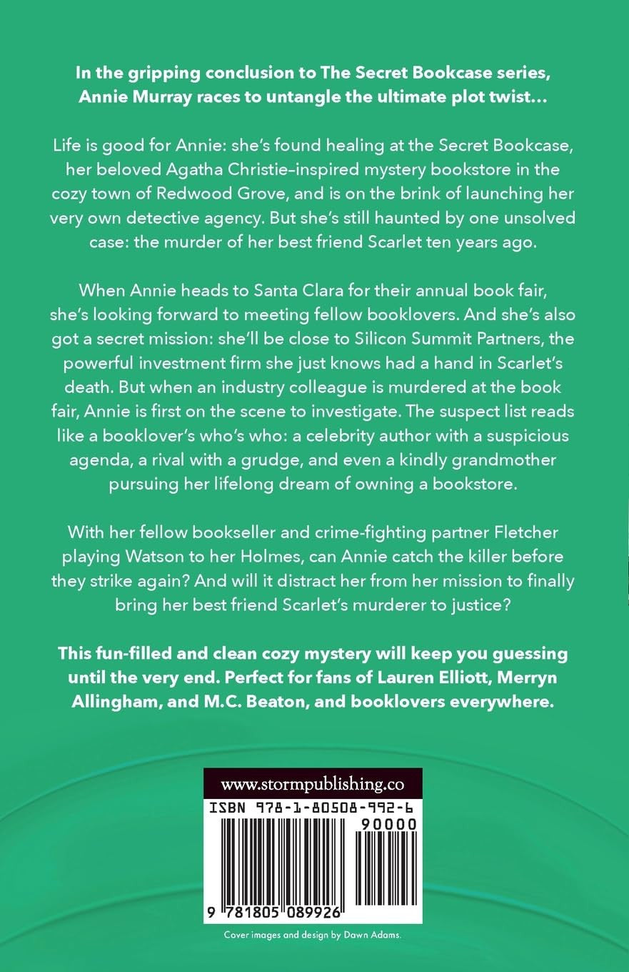 In the gripping conclusion to The Secret Bookcase series, Annie Murray races to untangle the ultimate plot twist… Life is good for Annie: she’s found healing at the Secret Bookcase, her beloved Agatha Christie-themed mystery bookstore in the cozy town of Redwood Grove, and is on the brink of launching her very own detective agency. But she's still haunted by one unsolved case: the murder of her best friend Scarlet ten years ago. When Annie heads to Santa Clara for their annual book fair, she’s looking forward to meeting fellow booklovers. And she’s also got a secret mission: she’ll be close to Silicon Summit Partners, the powerful investment firm she just knows had a hand in Scarlet’s death. But when an industry colleague is murdered at the book fair, Annie is first on the scene to investigate. The suspect list reads like a book lover’s who’s who: a celebrity author with a suspicious agenda, a rival with a grudge, and even a kindly grandmother pursuing her lifelong dream of owning a bookstore. With her fellow bookseller and crime-fighting partner Fletcher playing Watson to her Holmes, can Annie catch the killer before they strike again? And will it distract her from her mission to finally bring her best friend Scarlet’s murderer to justice? This fun-filled and clean cozy mystery will keep you guessing until the very end. Perfect for fans of Lauren Elliott, Merryn Allingham and M.C. Beaton, and book lovers everywhere. Readers love The Secret Bookcase Mysteries: “Absolutely loved this!!! I was on the edge of my seat the entire time and had no idea whodunit until it was revealed… I love a good twist!” Reader review, ⭐⭐⭐⭐⭐ “Knocked me out of my seat!!! Loved this... eagerly waiting the next… Five stars hands down.” Reader review, ⭐⭐⭐⭐⭐ “Kept me glued to the page as I raced to find out whodunit. A winner!” Reader review, ⭐⭐⭐⭐⭐ “This book was AMAZING! I can’t wait to read more!” Reader review, ⭐⭐⭐⭐⭐ “Unputdownable cozy mystery!! This was such a fun read, I could not get enough. It felt like a classic Hercule Poirot or Benoit Blanc mystery. Perfection!” Reader review, ⭐⭐⭐⭐⭐ “Ellie Alexander has done it AGAIN!! As cozy mysteries go this is one of the coziest… So good I devoured it in one sitting.” Reader review, ⭐⭐⭐⭐⭐ “What a magnificent read! A perfect cozy mystery.” Reader review, ⭐⭐⭐⭐⭐ “ELLIE ALEXANDER HAS A NEW SERIES!!!!! I immediately wanted to hop on a flight to Redwood Grove to take part in the festival and meet Annie, her friends, co-workers, and townspeople. The characters and the setting seemed so real.” Reader review, ⭐⭐⭐⭐⭐ “A page-turner. Ellie Alexander has once again proven herself as the queen of cozy mysteries.” Reader review, ⭐⭐⭐⭐⭐ “I have loved every series Ellie has written so far and this one did not disappoint! I truly was hooked and I stayed up way too late because I just needed to finish the book.” Reader review, ⭐⭐⭐⭐⭐ “A definite must-read for all book lovers, and fans of cozy murder mysteries.” Reader review, ⭐⭐⭐⭐⭐