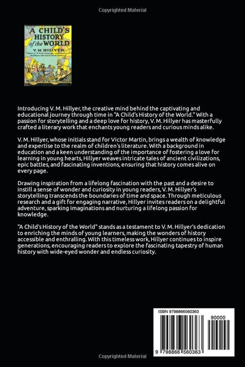 🌍 Dive into the captivating world of history with "A Child's History of the World" by V. M. Hillyer, now available in an enchanting paperback edition! 📚 Embark on a delightful journey through time, where young readers and the young at heart can explore the wonders of ancient civilizations, epic battles, and remarkable inventions. With V. M. Hillyer as your guide, history comes alive with vivid storytelling, making every page turn an adventure filled with awe and wonder. 🚀 From the awe-inspiring pyramids of Egypt to the majestic castles of medieval Europe, this book will whisk you away to far-off lands and bygone eras, sparking your imagination and curiosity. Join the ranks of legendary explorers, brave knights, and ingenious inventors, all while uncovering the secrets of our shared human heritage. 🏰🌟 Perfect for young readers eager to discover the world's past, this beautifully crafted paperback edition is not just a book—it's a ticket to a time machine, a passport to historical marvels, and a treasure trove of knowledge. 🕰️✨ Whether you're a history enthusiast, a curious student, or a parent seeking an engaging educational experience for your child, "A Child's History of the World" is a must-have addition to your library. Let the pages of this book transport you to extraordinary realms, leaving you inspired and hungry for more. 📖❤️ Don't miss out on this unforgettable historical adventure! Grab your copy today and embark on a fascinating expedition through the ages. Prepare to be captivated, enlightened, and utterly enchanted. 🎉🌟