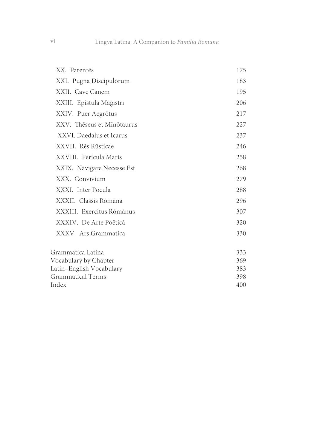 Though designed especially for those approaching Familia Romana at an accelerated pace, this volume will be useful to anyone seeking an explicit layout of Familia Romana's inductively-presented grammar. In addition to many revisions of the text, the Second Edition also includes new units on cultural context, tied to the narrative content of the chapter.