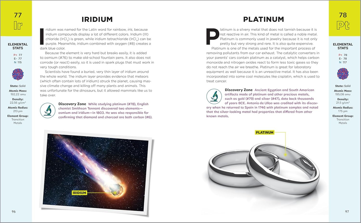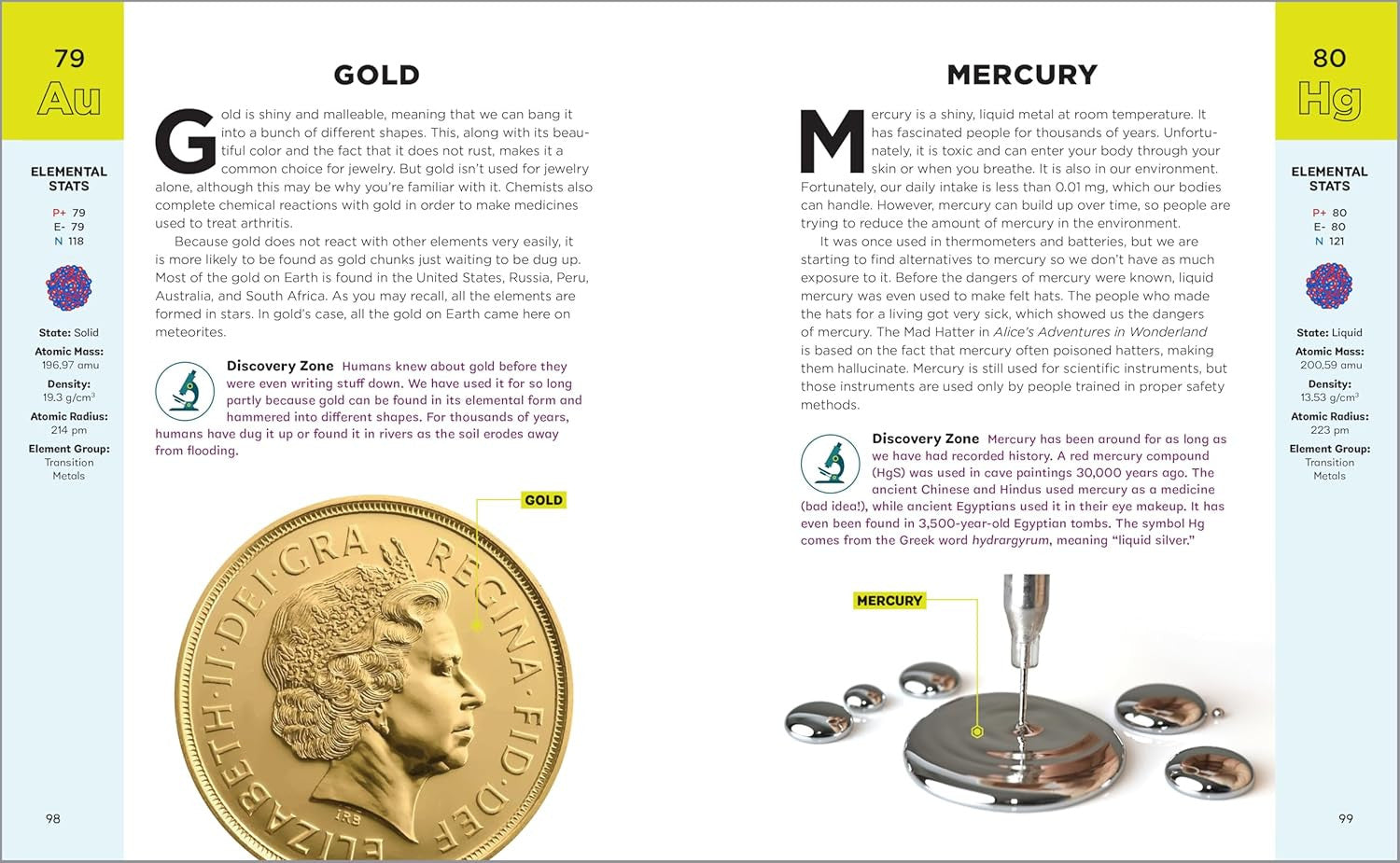 From aluminum to zinc―make it fun for kids 8 to 12 to discover all 118 elements on the periodic table! Discover the building blocks of the entire world! A Kids' Guide to the Periodic Table takes you on an incredible journey through history and science that will teach you all about the 118 elements that make up, well, everything! Go in-depth with awesome profiles on each and every element that provide all their important elemental stats (like their atomic number, state, group, and more), as well as awesome facts about the element and its discovery. Take what you know about science―and the world―to a new level as you discover what makes the periodic table of elements so amazing. A Kids' Guide to the Periodic Table includes: A fun, fact-filled science adventure awaits you with A Kids' Guide to the Periodic Table!