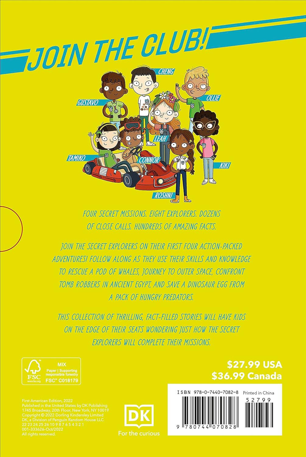 With thrilling narratives and plenty of humor, children will love these four fact-packed chapter books in this adventure collection: The Secret Explorers and the Lost Whales, The Secret Explorers and the Comet Collision, The Secret Explorers and the Tomb Robbers, and The Secret Explorers and the Jurassic Rescue. Join marine-life expert Connor on an undersea adventure, space brainiac Roshni on a mission to fix a space probe, history nerd Gustavo in a battle against tomb robbers, and dinosaur expert Tamiko as she races to save a dinosaur egg!