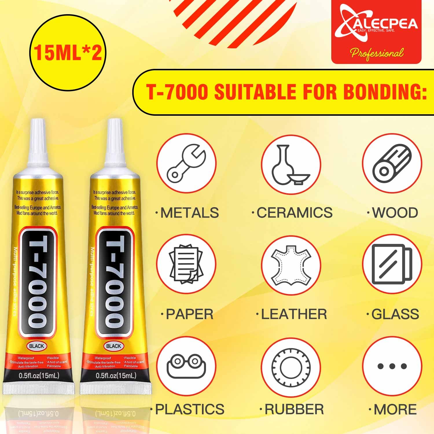 ALECPEA Upgrade T-7000 Black Adhesive Glue - 2PCS 15ml | High-Performance Waterproof Adhesive for Precision Repairs, Perfect for Phone, Electronics, Jewelry, and Crafts