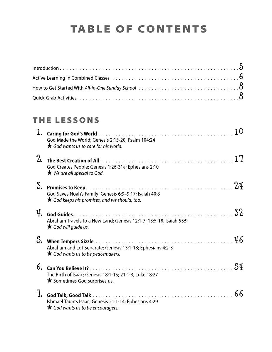 All-in-One is a best-selling Sunday school lesson series that children love—and you will, too! Each volume offers 13 fun Bible lessons that help kids grow closer to Jesus. Just gather a few common, inexpensive items, photocopy the handouts, and you're ready to teach creative Bible lessons your kids will love! These lessons are specially designed for children’s ministries with mixed-age classes for ages 4 through 12. Teachers and volunteers will love that these Sunday school lessons offer easy-prep and lasting impact!