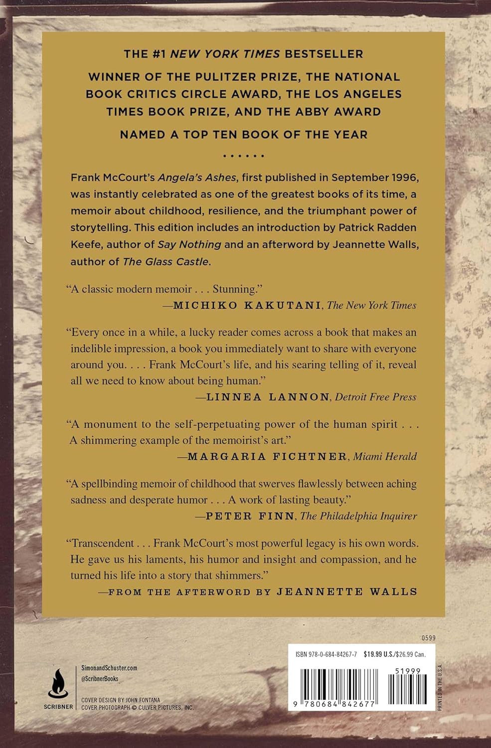 Angela’s Ashes, imbued on every page with Frank McCourt’s astounding humor and compassion, is a glorious book that bears all the marks of a classic.