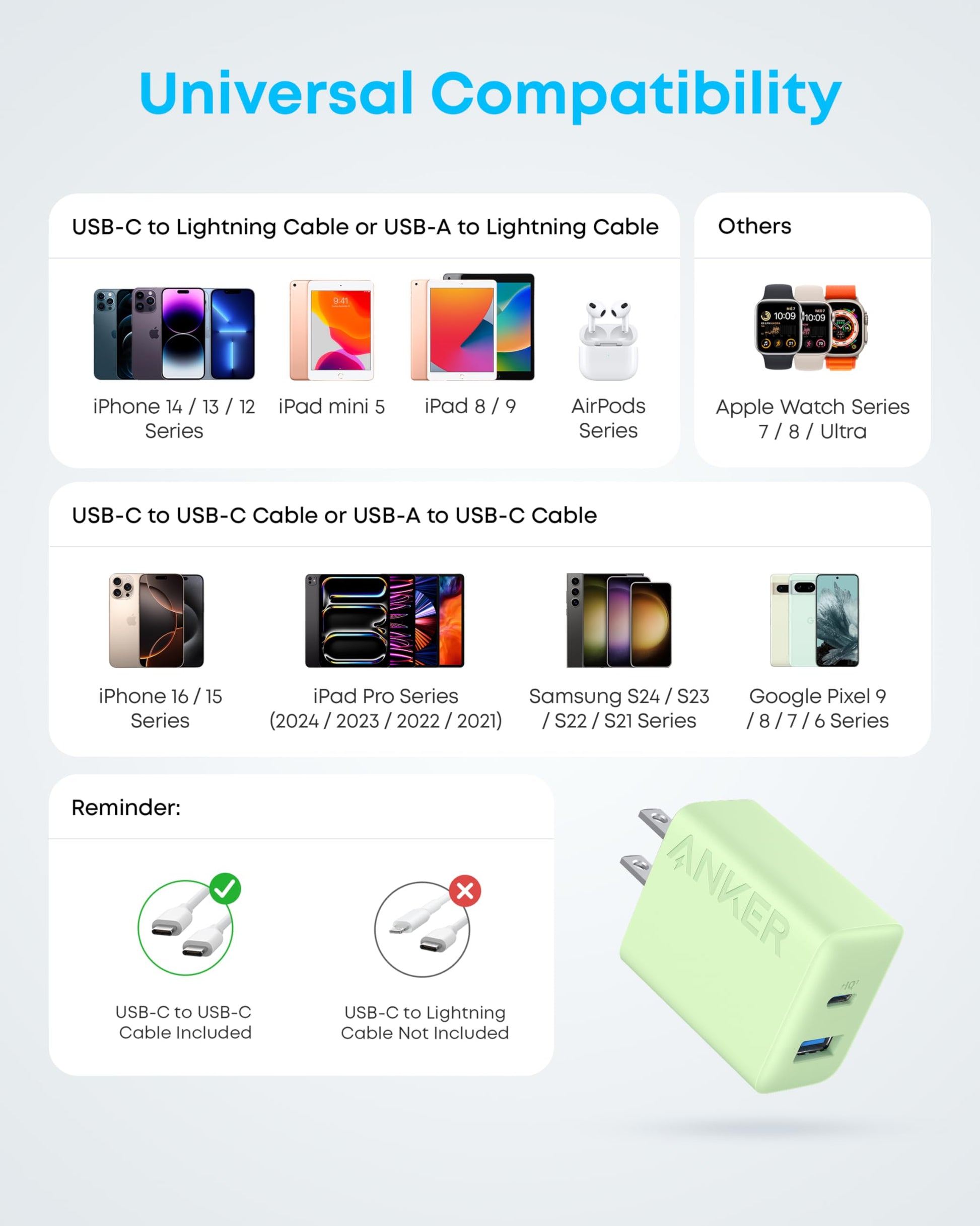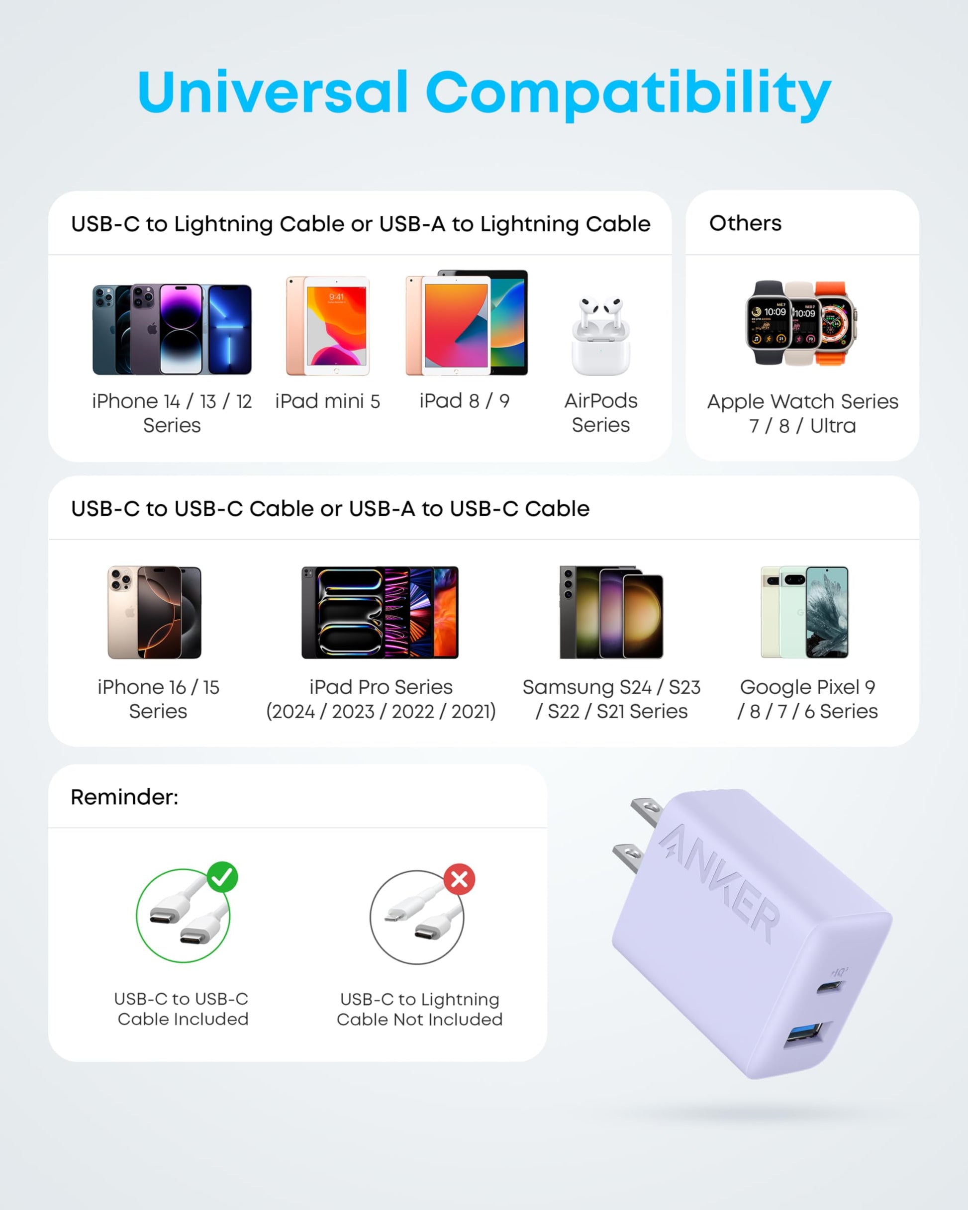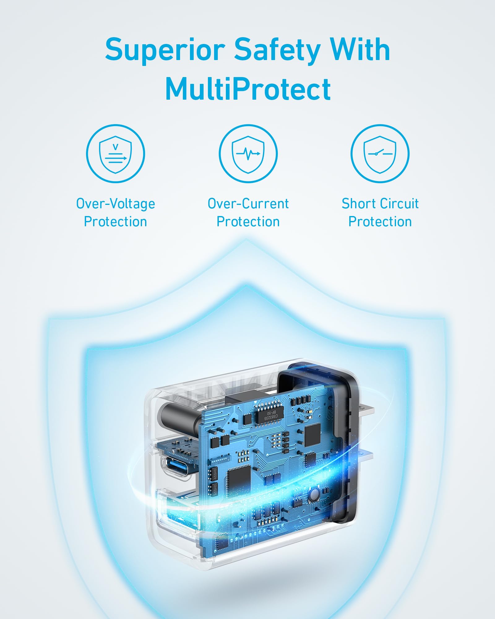 - Safety Features You Can Trust: Anker's proprietary system includes overvoltage protection, temperature control, and other safety features designed to help safeguard your devices while charging.