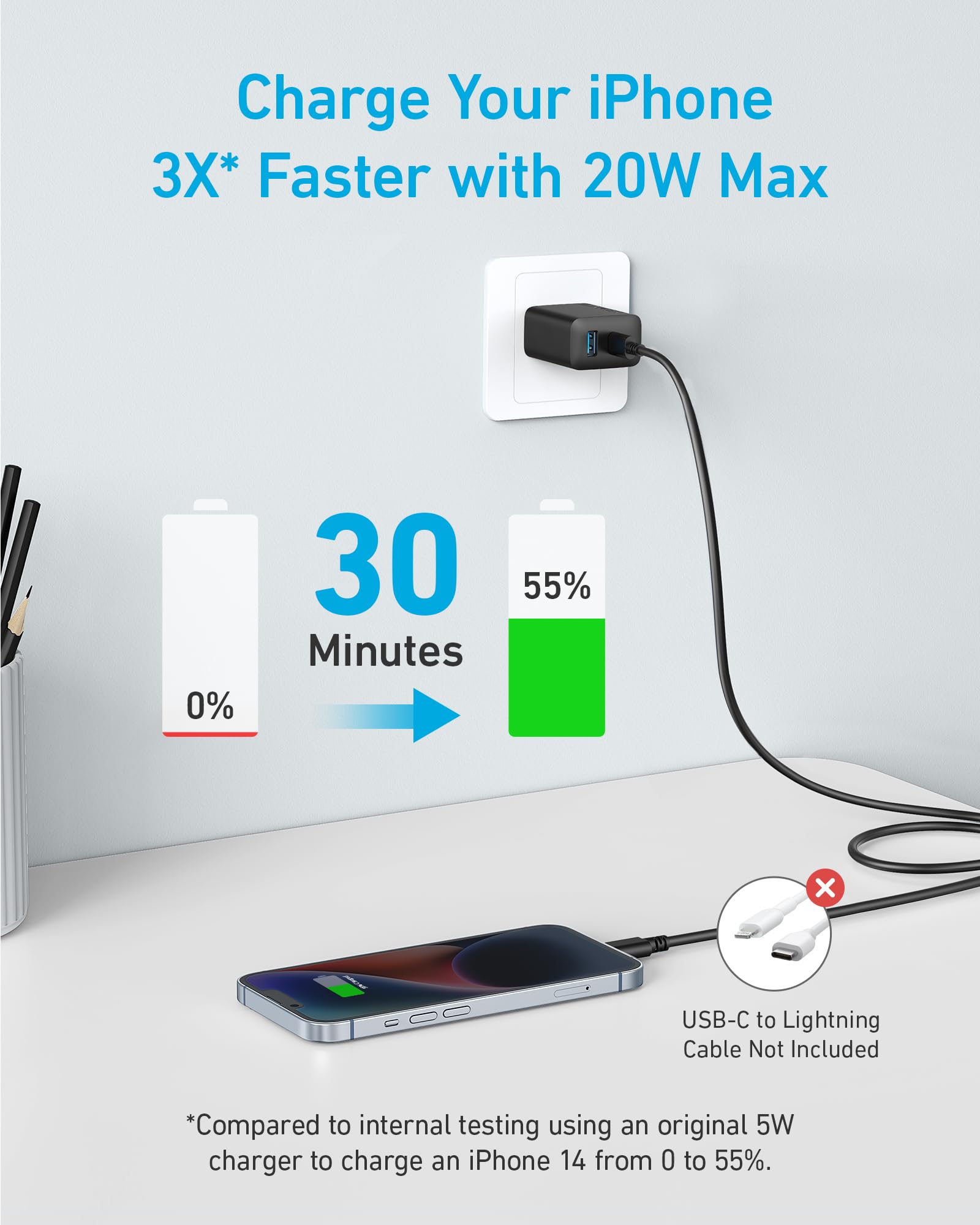 Anker iPhone 17/16 Charger, 2-Pack 20W Fast USB C Charger Block, for iPhone 16/16 Pro Max/15 Series/iPad Pro and More (Black, 2 Pack & 2 Cable)