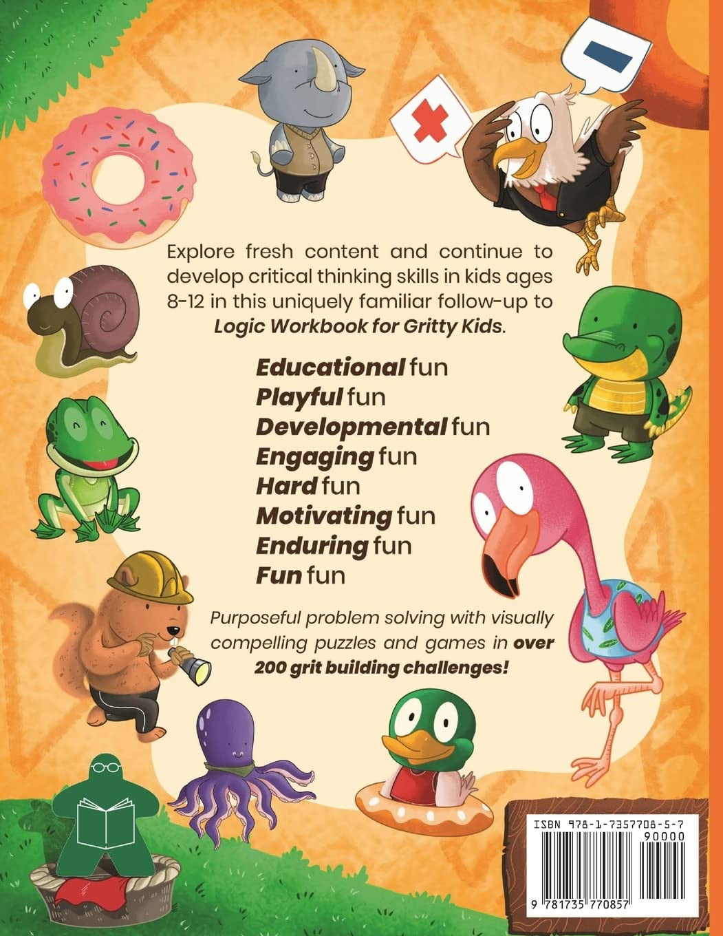 Whether you are looking for activities to develop or entertain, Another Logic Workbook for Gritty Kids is unmatched. Comprehensive content is most appropriate for kids ages 8-12, but some puzzles and games are entertaining for adults and kids of all ages, making this book a great family value.