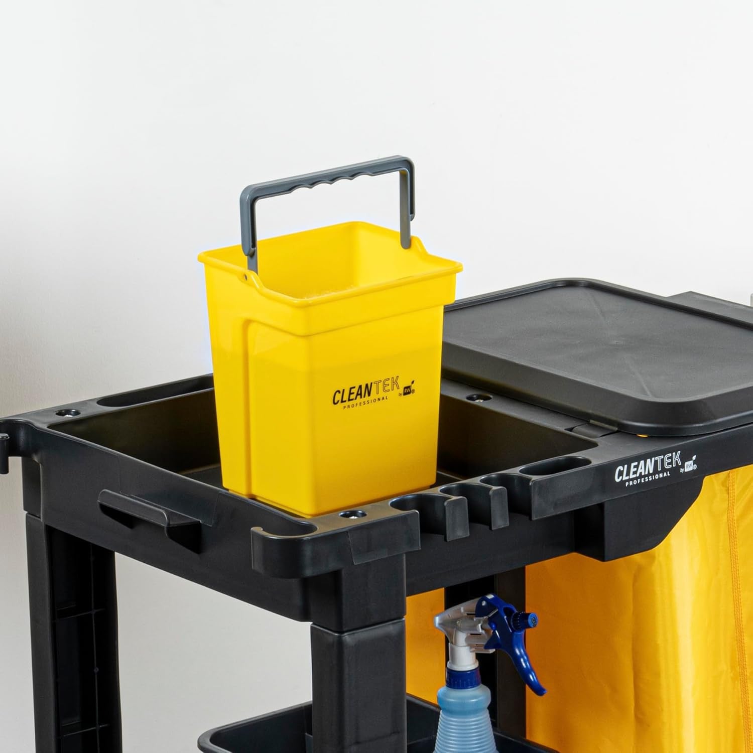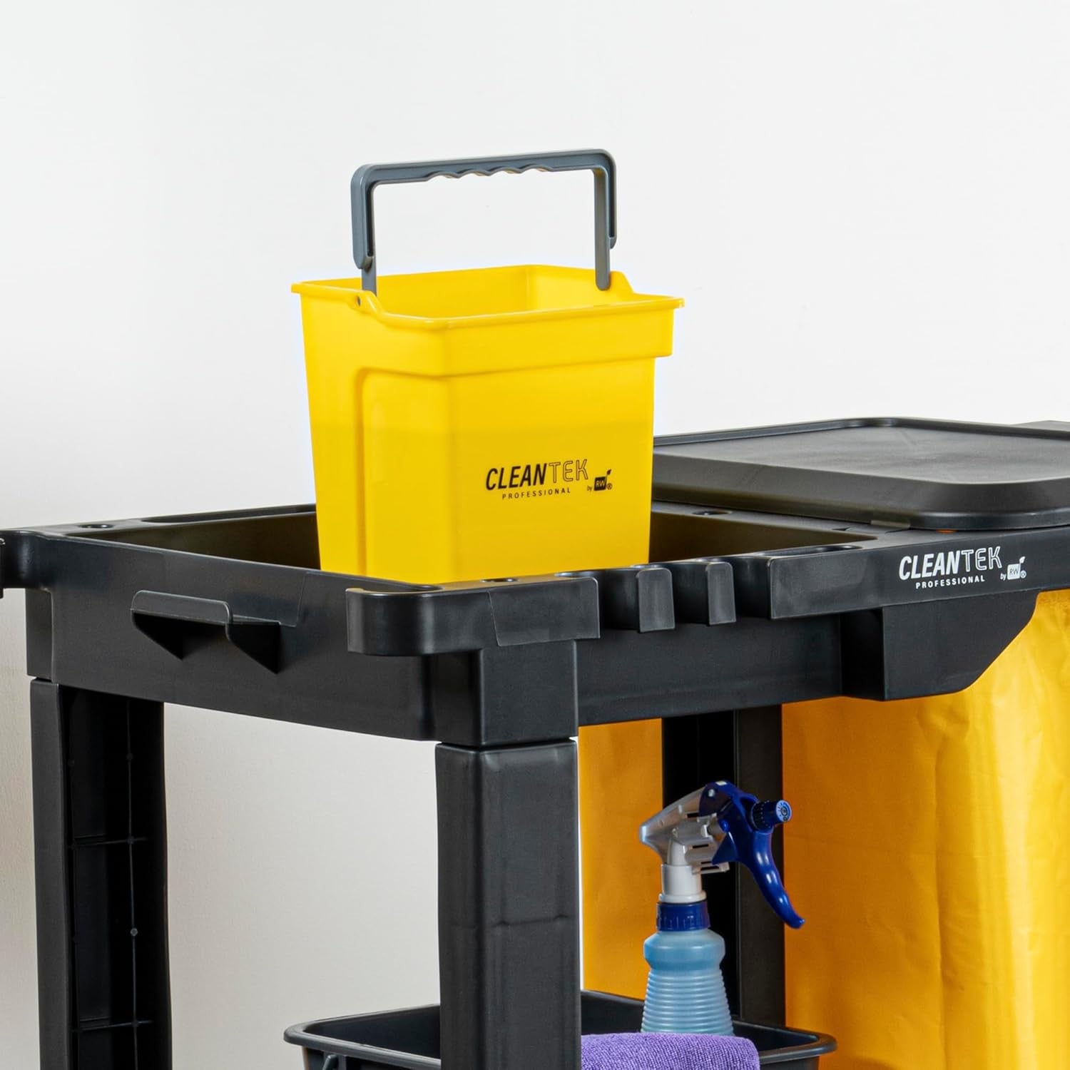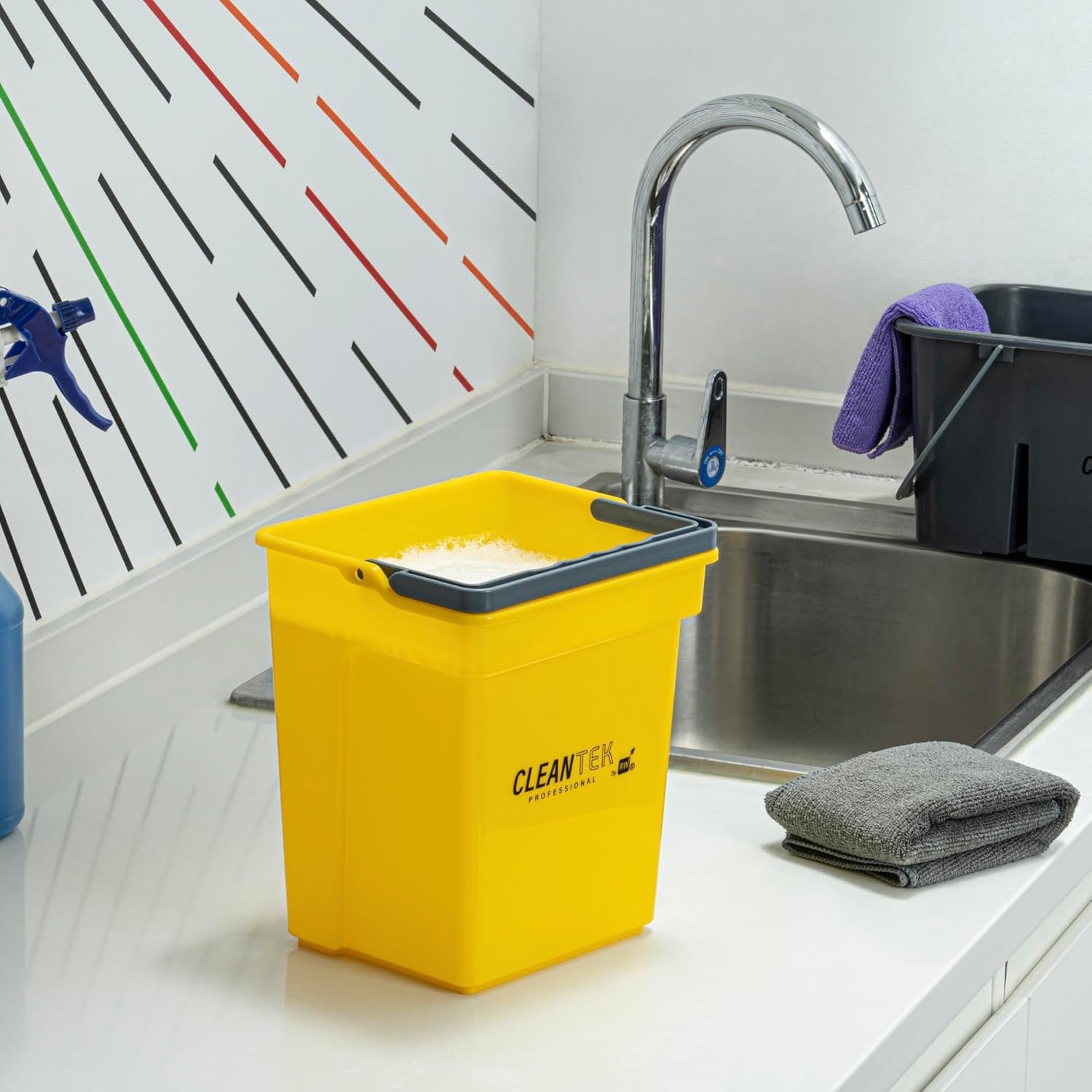 Streamline your cleaning tasks with our Clean Tek Professional 4-quart Yellow Cleaning Bucket. Made from sturdy plastic, this cleaning bucket is built to withstand heavy use and damage, ensuring long-lasting durability. The compact size of this plastic pail makes it easy to store and maneuver, fitting into tight spaces and making it convenient for various tasks. Bright yellow in color, this plastic bucket with handle is easily identifiable, reducing the chance of misplacement or mix-ups in busy environments. Equipped with an attached handle, this plastic bucket ensures easy carrying and maneuvering, providing added convenience for transporting and using the bucket. With a capacity of 4 quarts, this yellow bucket measures 7.09 inches in length by 6.3 inches in width by 8.46 inches in height. Sold in a 1 count box.