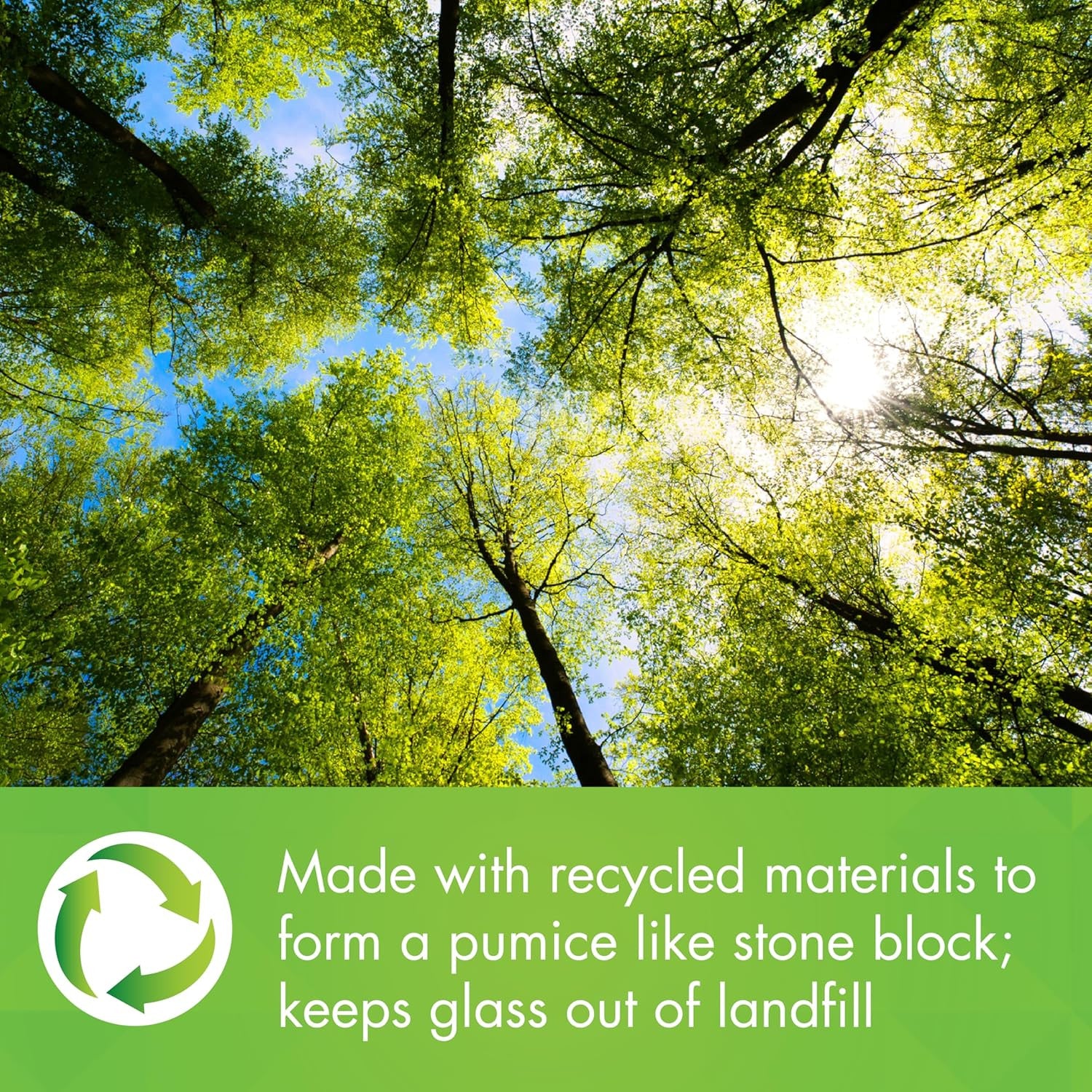 EarthStone has reinvented heavy-duty cleaning. Now you can tackle tough jobs without harsh chemicals and fumes. This effective cleaner is made from 98% recycled glass that is refined and formed into a block, reducing landfill waste. It’s a smarter way to quickly and easily remove baked-on grease, food, and grime. It can be used on porcelain and ceramic surfaces like toilets, sinks, tubs, showers, cookware, bakeware, tile, grout, oven interiors and grates, ceramic cooktops, pools, tools, and more. The best part is that no additional cleaning sprays, gels, or powders are required because our stone is a powerful scrubber. So you don’t need to worry about dangerous chemicals or fumes around you or your family. This heavy-duty cleaner is made from recycled glass that is refined and formed into a pumice like stone – keeping that glass out of a landfill. EarthStone is proudly made in the USA.