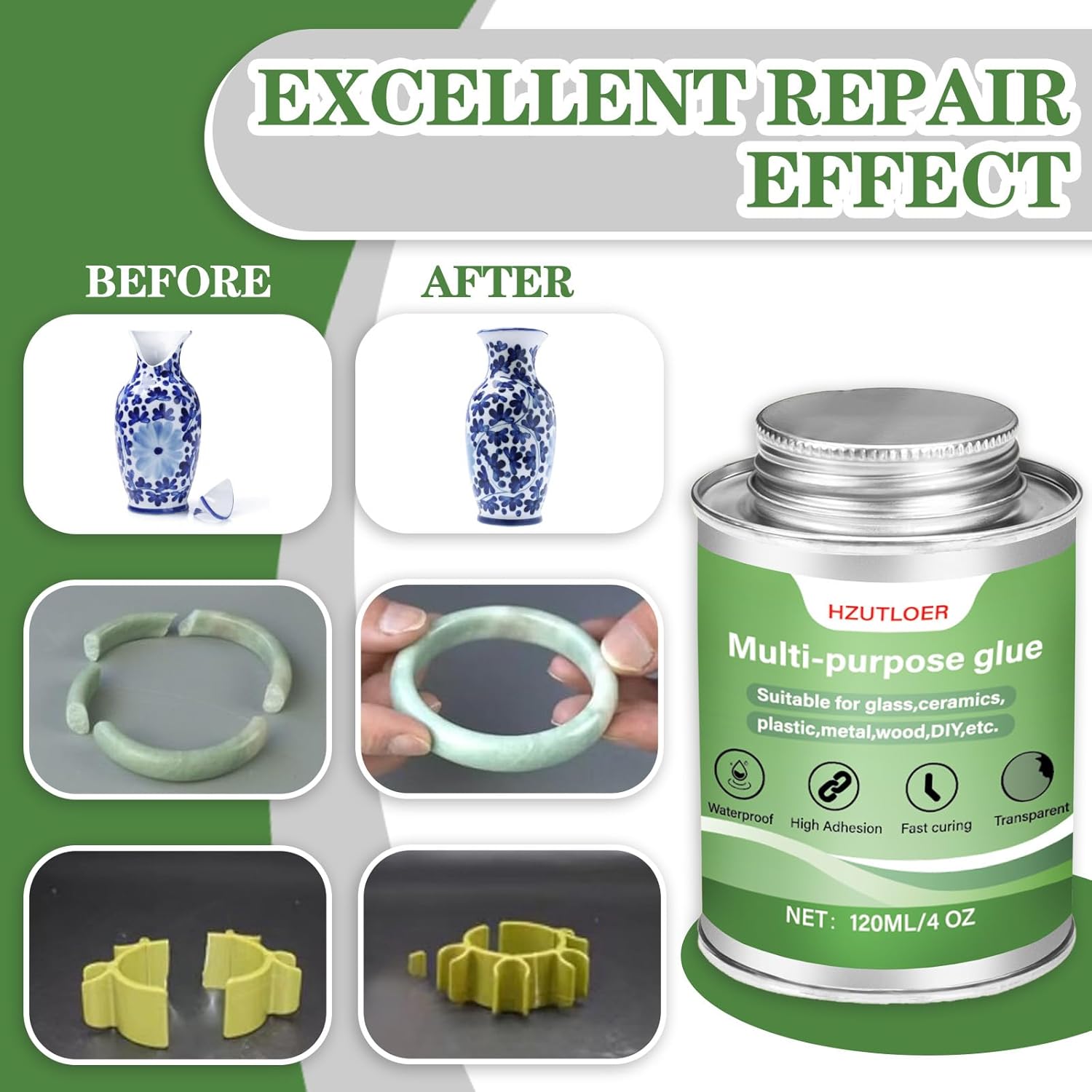 Multi-Purpose Super Glue | 120ml (4oz) High Strength Clear Adhesive with Brush | for Wood, Ceramics, Leather, Plastic | DIY Crafts & Metal Repair