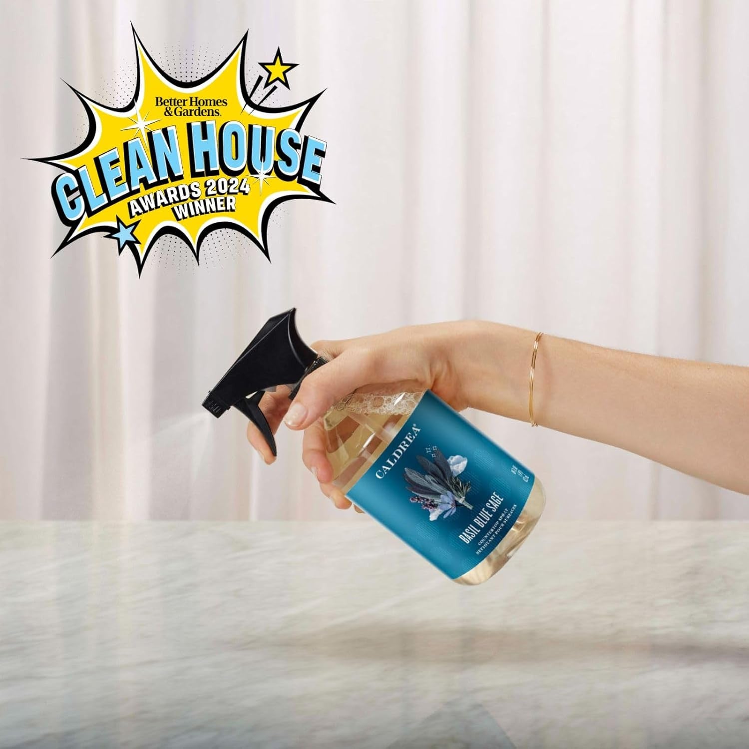 Using Caldrea Basil Blue Sage Countertop Spray is easy and hard working. This quick spray uses a special vegetable protein extract to make odors vanish from the kitchen or bath. Safe and effective on any non-porous, surface including natural stone.