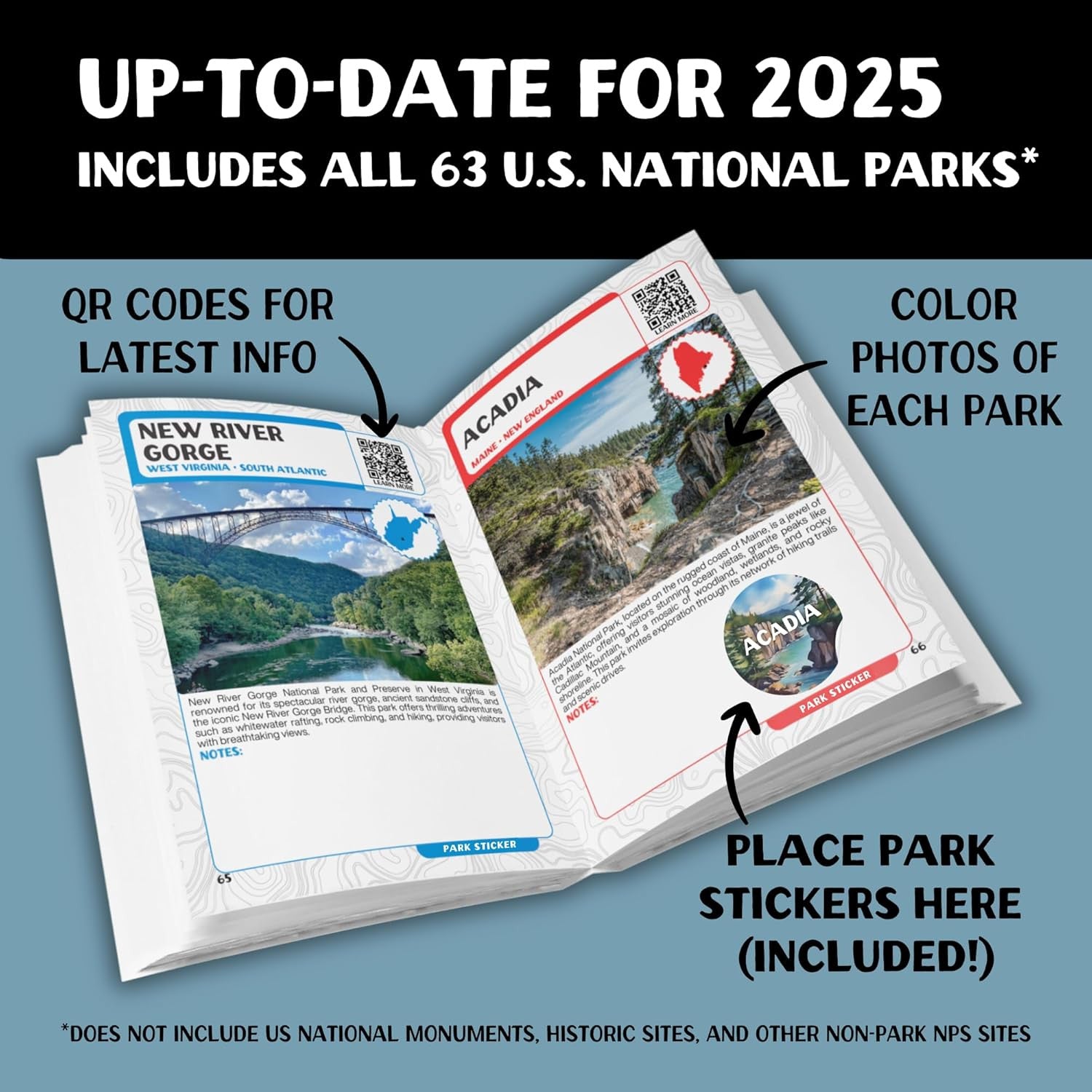 Are you ready to discover the best of the U.S. National Parks? Plan your adventure and track your park visits with this passport-sized National Park Stamp Book and Sticker Set. Full-color, pocket-sized (3.5" x 5"), and updated for 2025, this passport-sized sticker book makes a unique national park gift for kids and adults. Each booklet offers: NATIONAL PARK STICKERS— Each passport-sized stamp book (3.5" x 5") includes a complete set of national park stickers, plus bonus nature stickers for your water bottle. Track your park visits by placing a sticker on the bottom right corner of each page, and then don't stop until you've finished your national park bucket list and seen all the parks. 2025 UPDATED — 3.5" x 5" booklet includes all 63 U.S. national parks, plus QR codes to access the latest information for each park. NOTE: Does not include U.S. National Monuments, National Historic Sites, or any other non-park NPS sites. FULL COLOR PRINT — Vibrant color photos showcase the unique beauty of each park and get you inspired to visit all 63 national parks in the USA! UNIQUE GIFT IDEA— Looking for thoughtful and unique national park gifts? This makes a perfect nature gift for all the hikers, campers, and outdoorsy adventure lovers on your list. INDEPENDENT PUBLICATION - This is an independent publication of Alpine Authors and is in no way affiliated with or endorsed by the National Park Service, Eastern National Press, or the Passport to Your National Parks (R) program. Order yours today! Then plan your next adventure and start checking off parks this weekend!