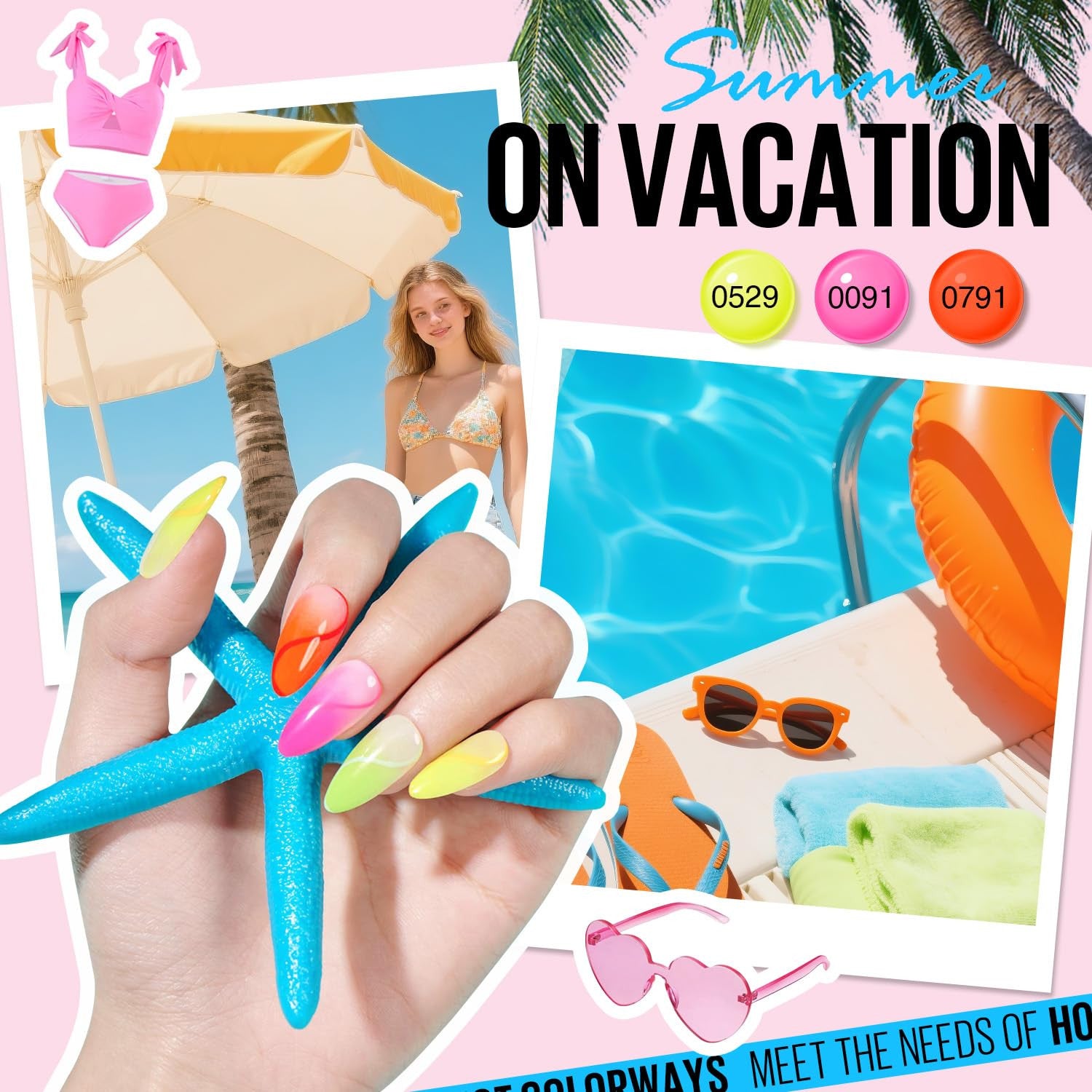 Neon Gel Nail Polish Set 6 Colors, Summer Neon Green Lime Yellow Pink Navy Blue